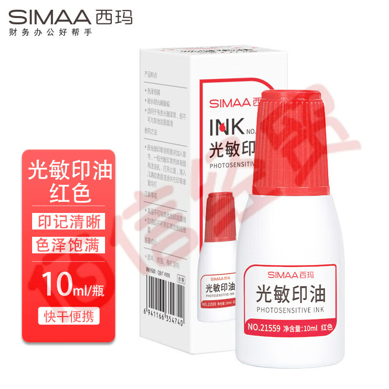 西瑪(SIMAA)10ml財(cái)務(wù)印章光敏印油 紅色印章印臺(tái)印油 財(cái)務(wù)專用 辦公用品 21559(10個(gè)起售) 自營(yíng)