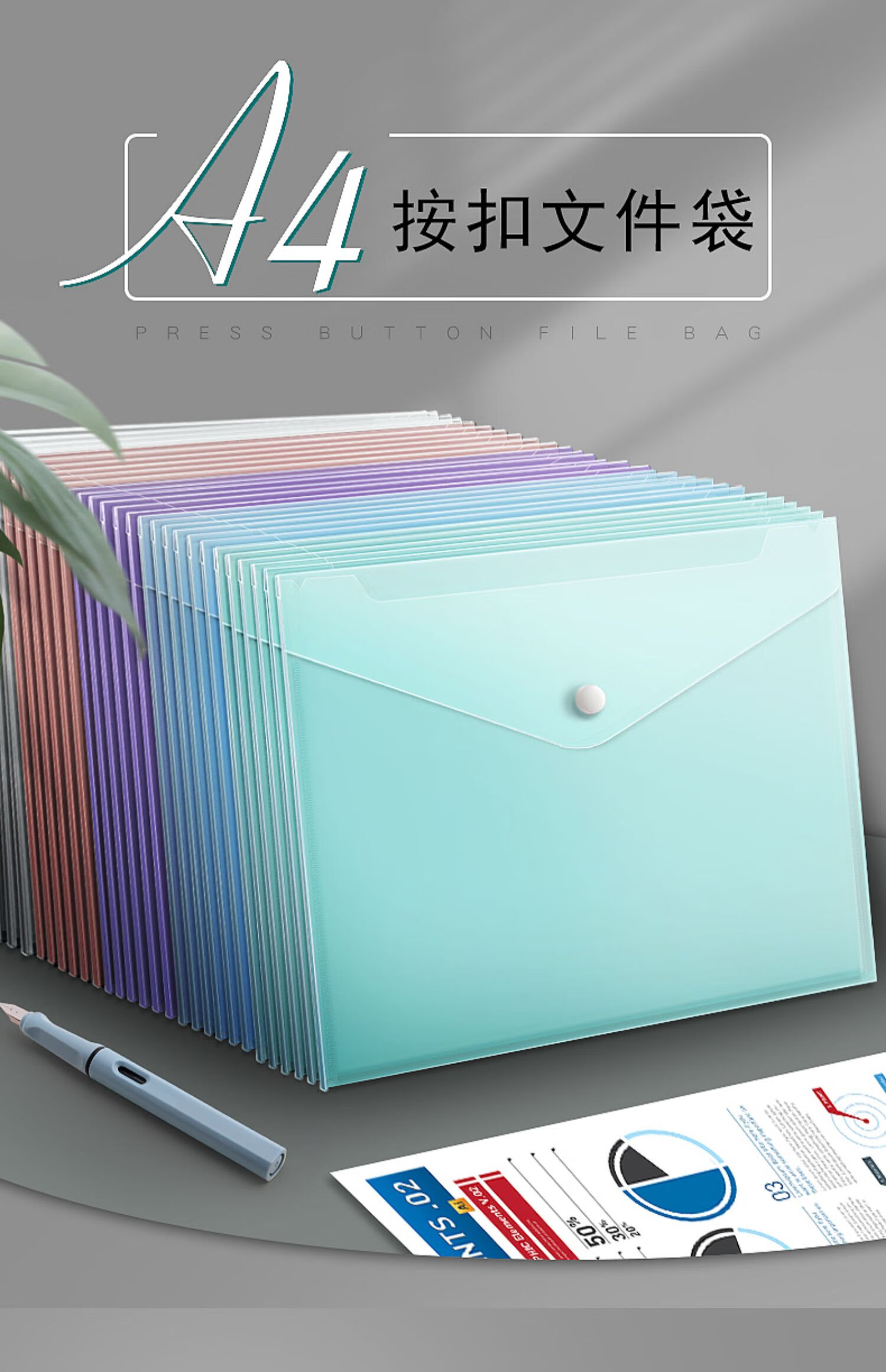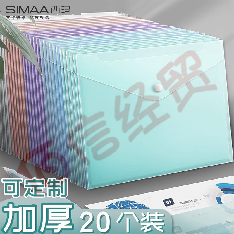 西瑪(SIMAA)20個(gè)裝 A4按扣學(xué)生莫蘭迪彩色文件袋 防水試卷資料收納袋 辦公文件檔案袋 辦公用品 文具 21273 自營
