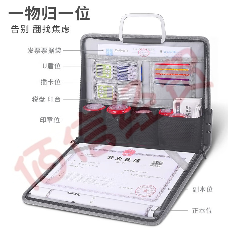 西瑪(SIMAA) 便攜手提印章執(zhí)照一體包 印章收納 工商營(yíng)業(yè)執(zhí)照證件收納包帶密碼鎖 灰4個(gè)章位 21456 自營(yíng)
