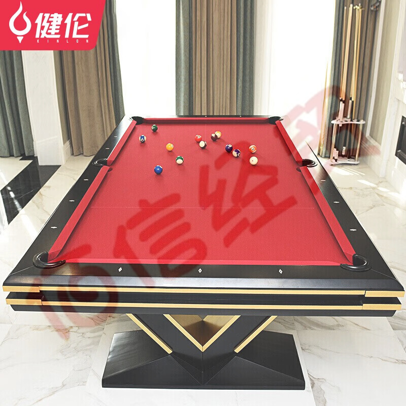健倫(JEEANLEAN) 原實木雕刻臺球桌標準美式黑八成人花式九球家用別墅歐式桌球臺 現(xiàn)代V型腿9尺 自營