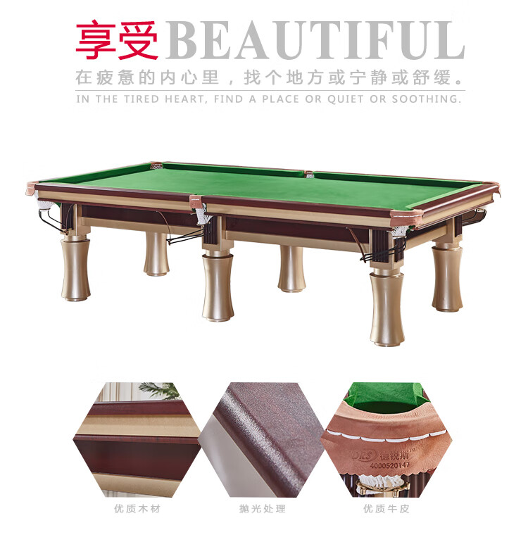健倫(JEEANLEAN) 臺球桌 標(biāo)準(zhǔn)成人家用 大圓腿桌球臺 大圓腿金色 標(biāo)準(zhǔn)款 自營
