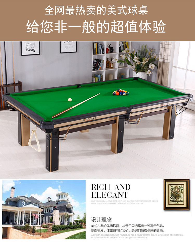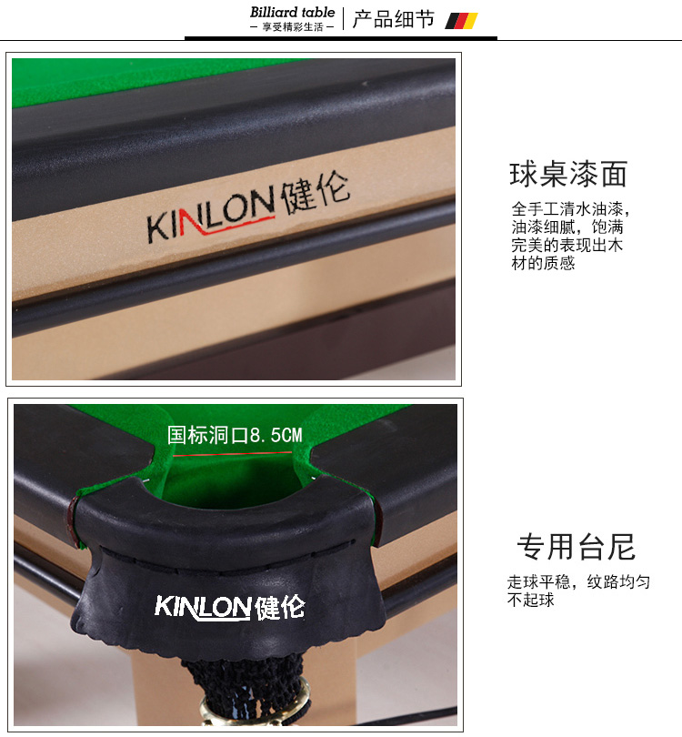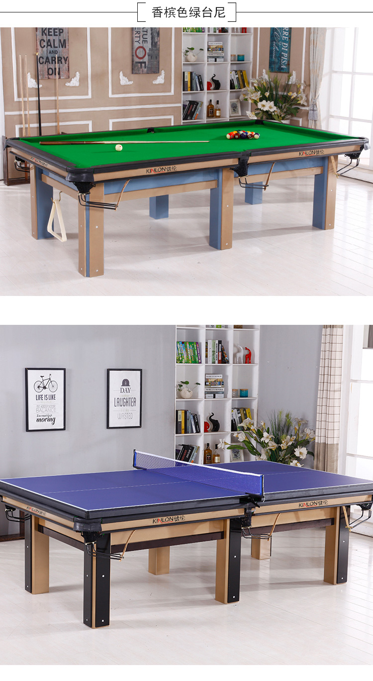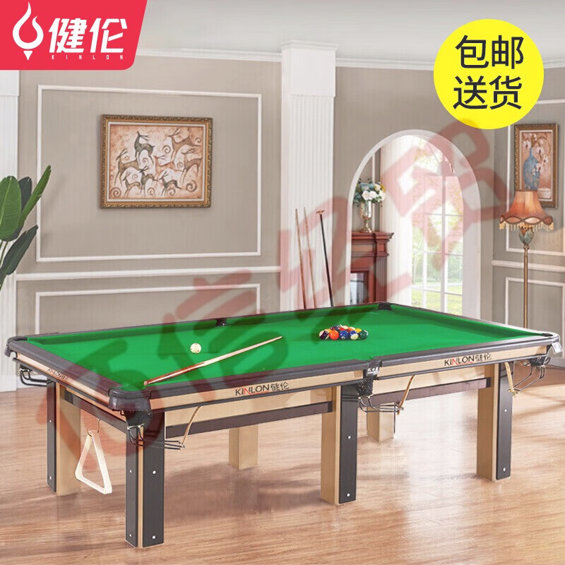 健倫(JEEANLEAN) 臺球桌標準成人美式黑八落袋臺球案家用中式二合一乒乓球桌球臺 方腿標配款 自營