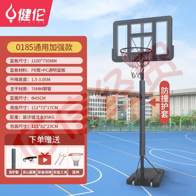 健倫籃球架成人固定手搖升降地理180籃球架