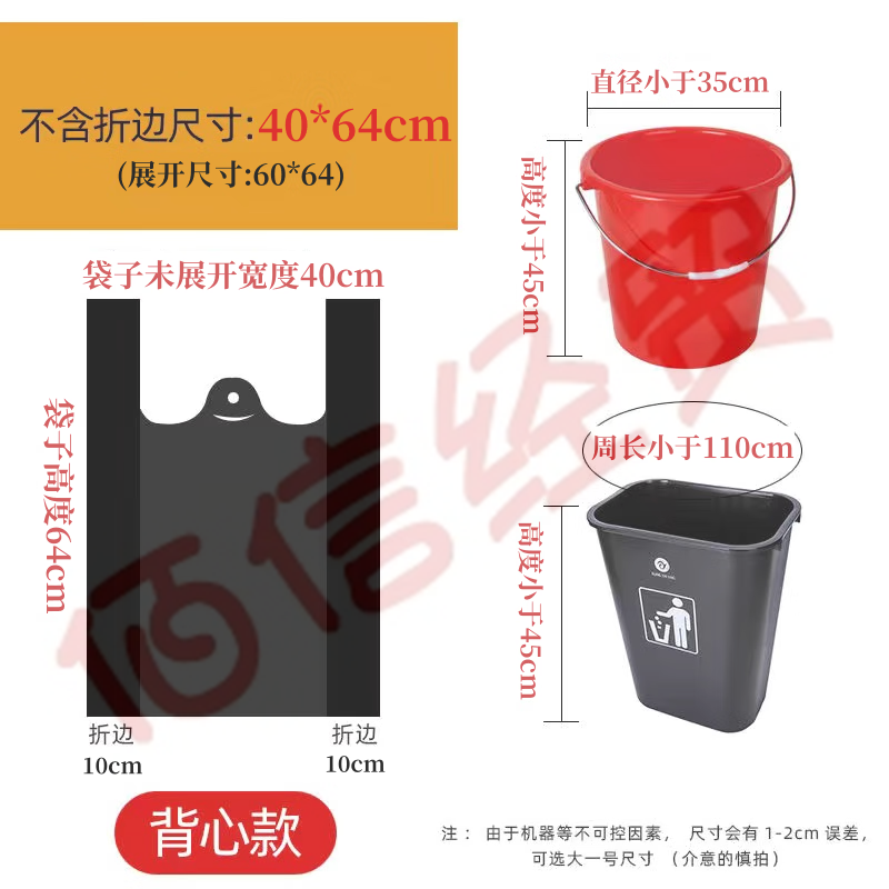 乙晨合垃圾袋手提式背心式平口式扣手式超強(qiáng)韌性全新材質(zhì) 手提式40*64cm特厚50只(5個(gè)起售) 自營
