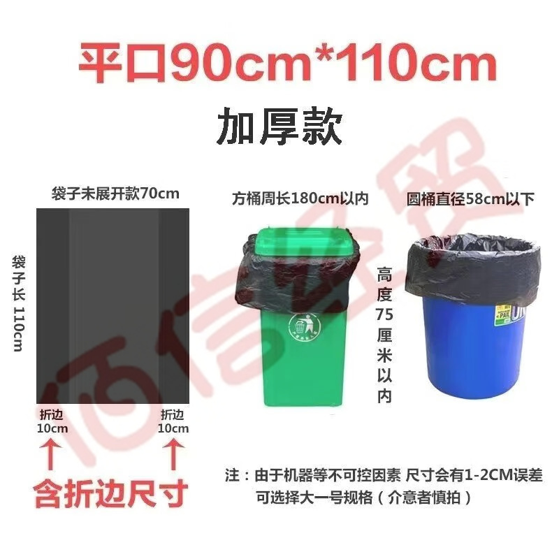 乙晨合垃圾袋手提式背心式平口式扣手式超強韌性全新材質(zhì) 平口式90*110cm加厚50只(3個起售) 自營