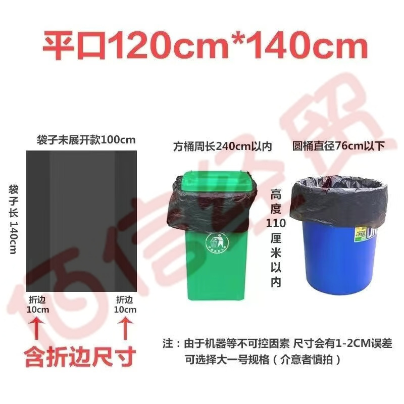 乙晨合垃圾袋手提式背心式平口式扣手式超強韌性全新材質(zhì) 平口式120*140cm特厚50只 自營