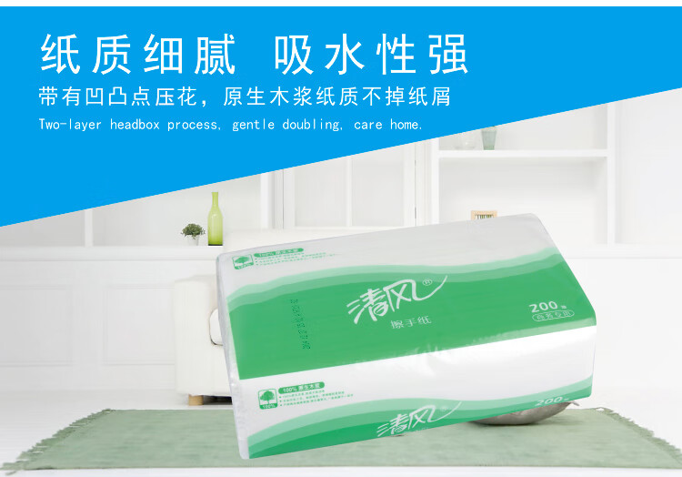 清風擦手紙加厚200抽張20包抹手紙干手家用洗手間衛(wèi)生紙商用酒店B913A