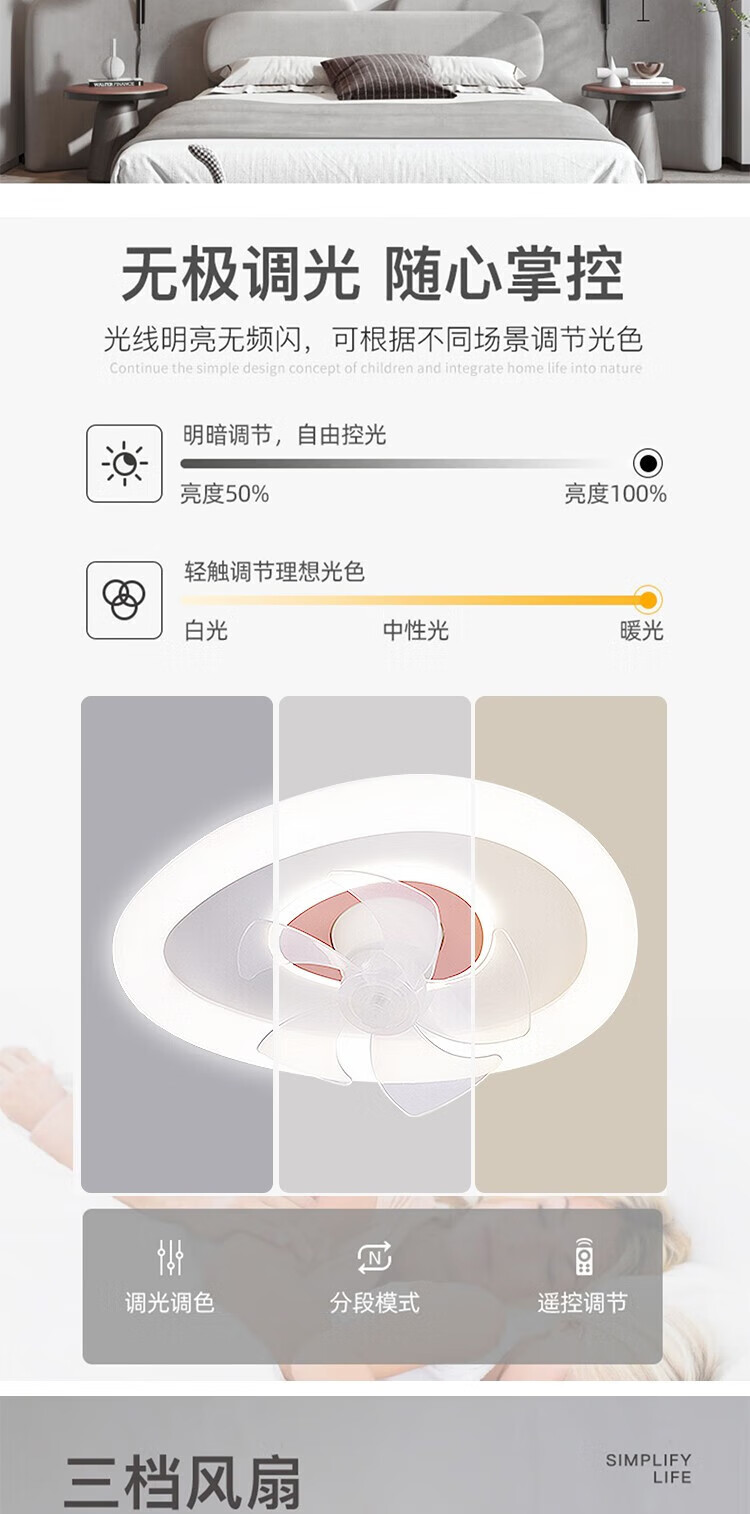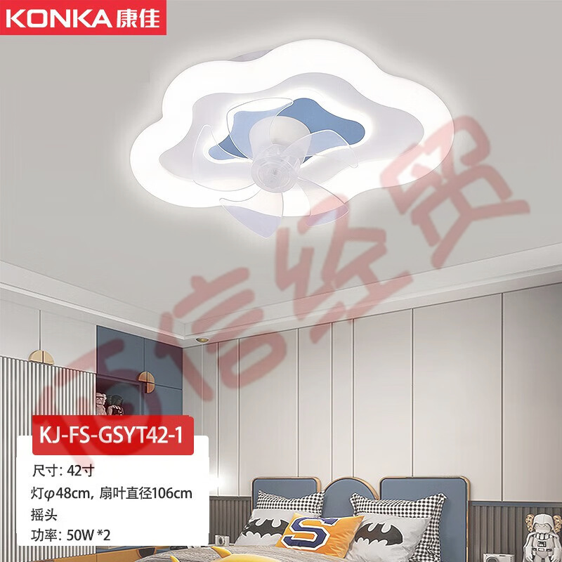 康佳(KONKA)風扇燈輕奢金色吊扇燈歐美式客廳臥室燈具中式燈飾餐廳燈 橙色風扇燈 自營