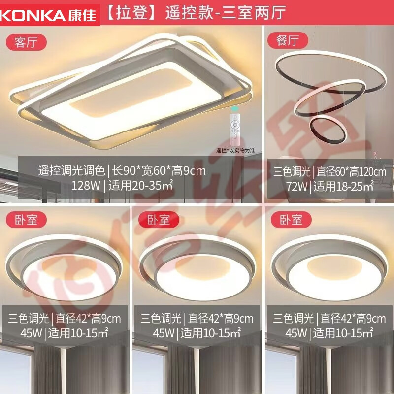 康佳(KONKA)LED吸頂燈后現(xiàn)代高端線條客廳臥室餐廳燈具燈飾套餐 【拉登】3室2廳 自營(yíng)