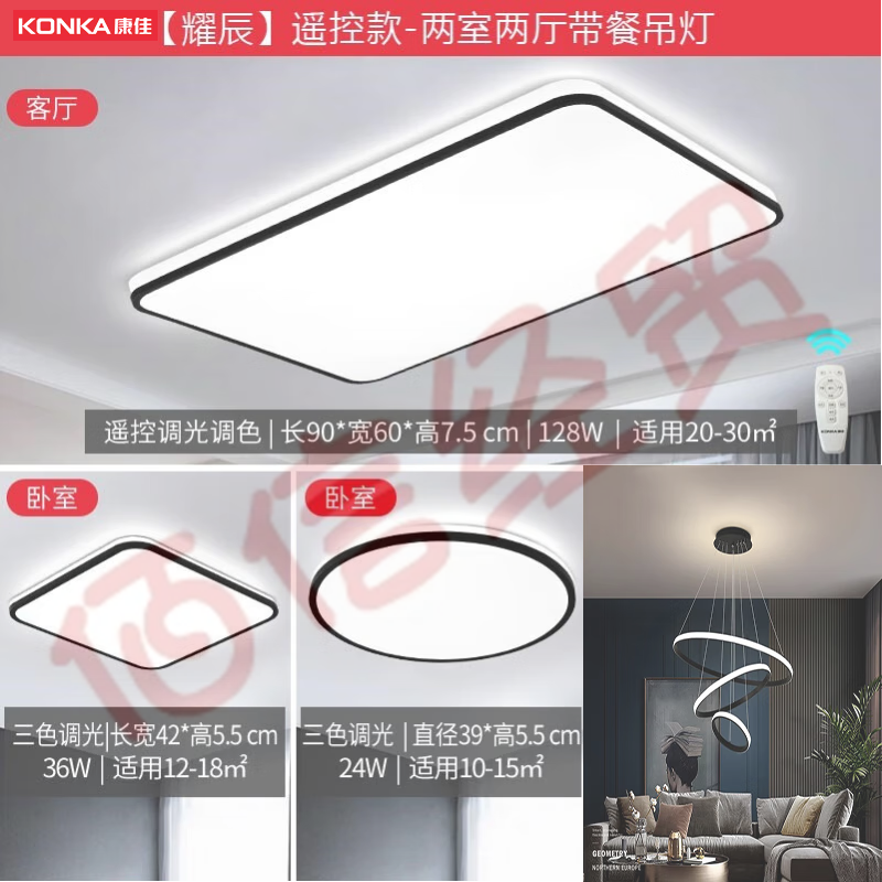 康佳(KONKA)客廳燈LED吸頂燈客廳臥室書房餐廳燈超薄燈飾北歐現代燈具 耀晨 【耀辰】兩室二廳 自營