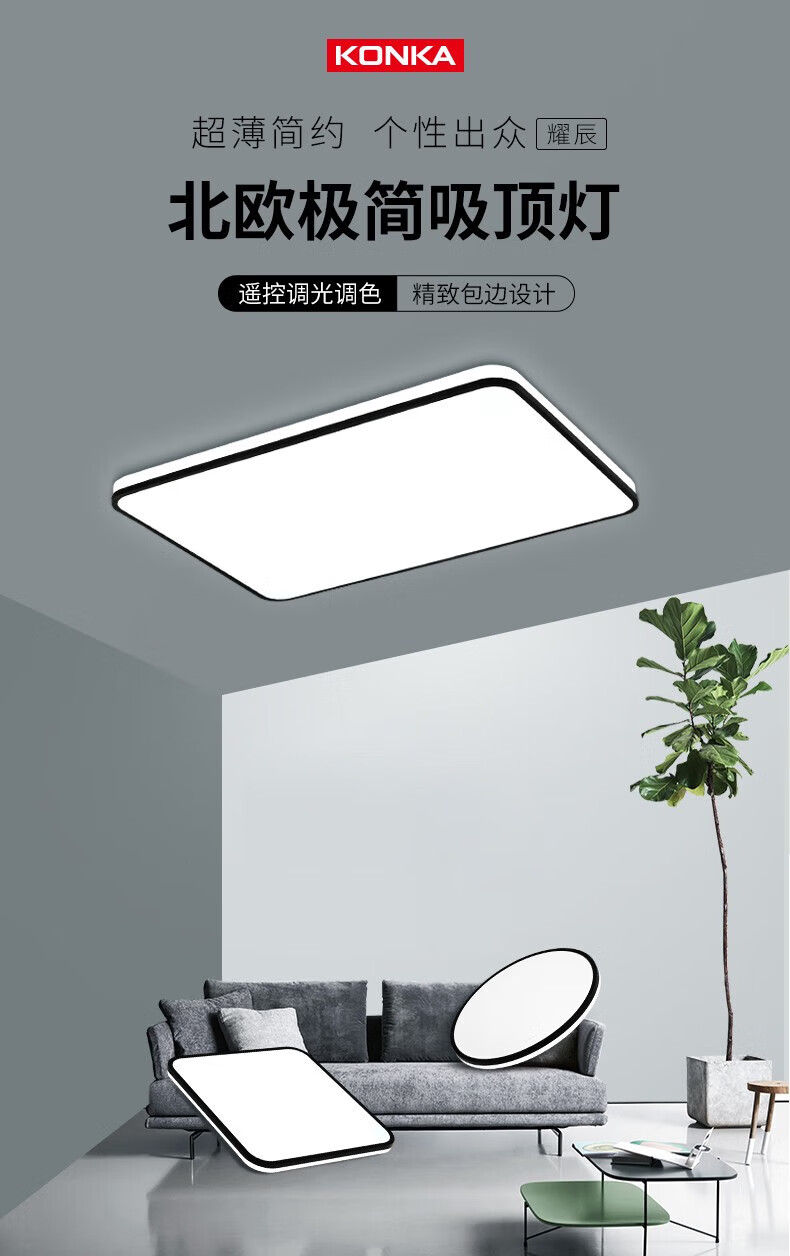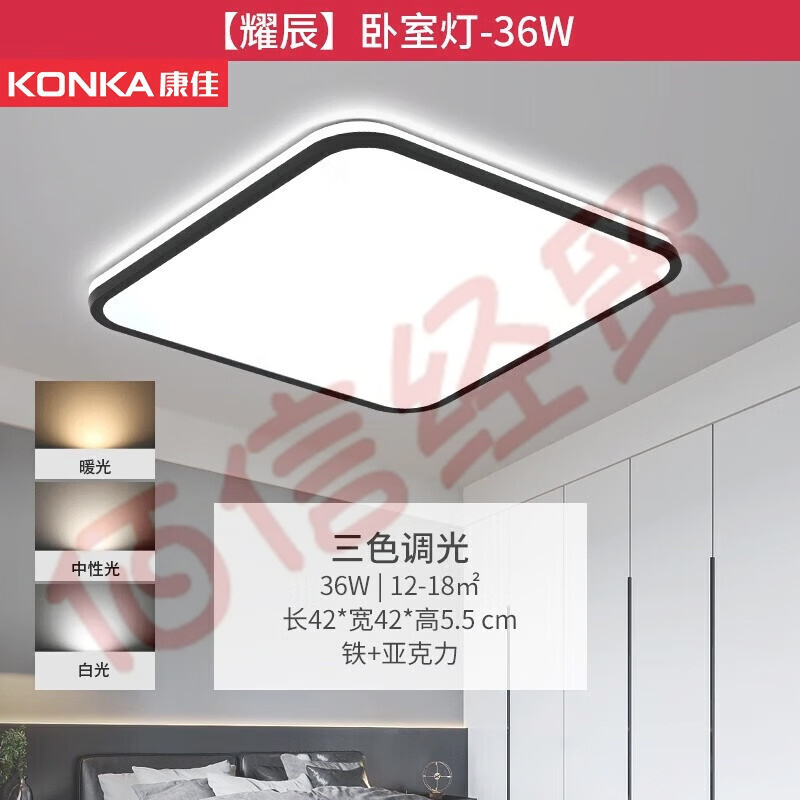 康佳(KONKA)LED客廳燈北歐簡(jiǎn)約大氣臥室吸頂燈 36W三色調(diào)光方臥室燈 自營(yíng)