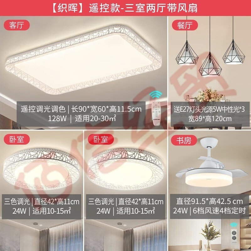 康佳(KONKA)客廳LED吸頂燈臥室書房燈簡約中式風(fēng)鳥巢燈具全屋套餐 織暉 【織暉】三室兩廳帶風(fēng)扇 自營