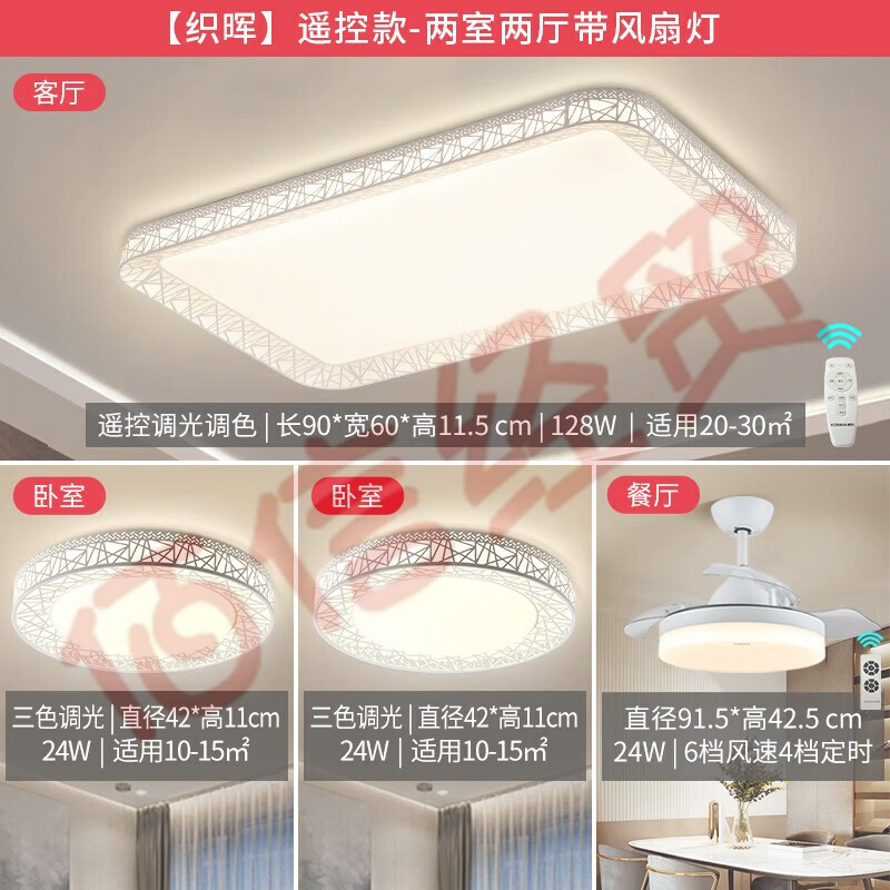 康佳(KONKA)吸頂燈鋁材大氣燈飾客廳臥室餐廳書房飯廳現(xiàn)代茶室別墅 【織暉】?jī)墒覂蓮d帶風(fēng)扇 自營(yíng)