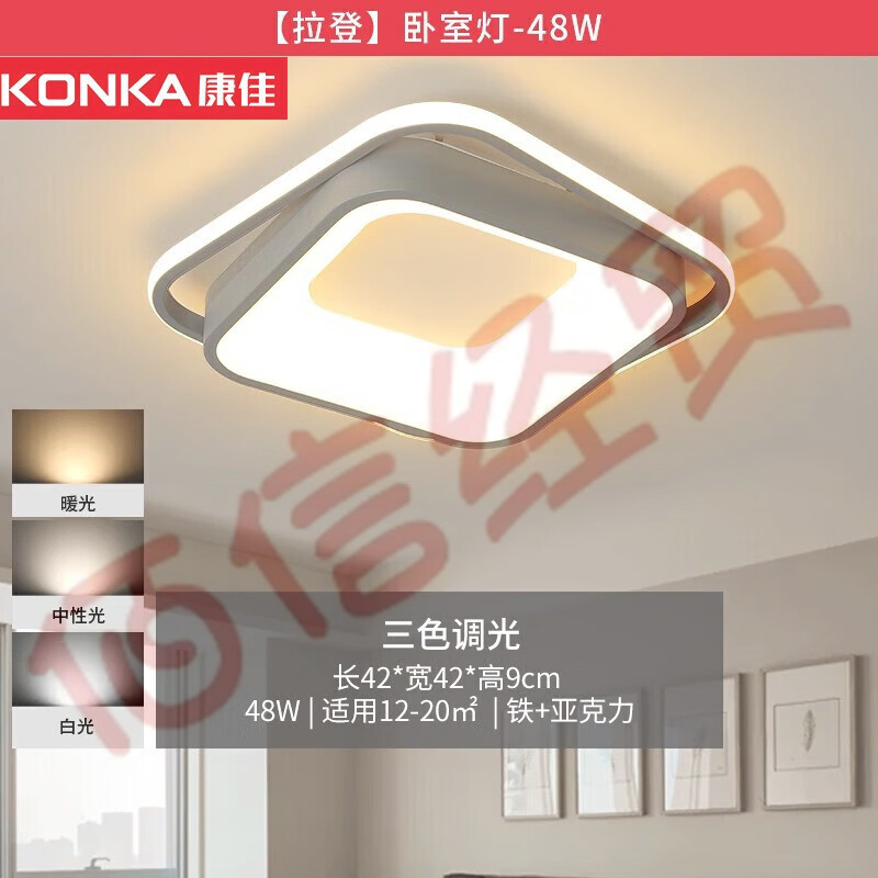 康佳(KONKA)照明LED客廳大燈吸頂燈餐廳臥室全屋燈具套餐 48瓦-三色調(diào)光方臥室燈 自營