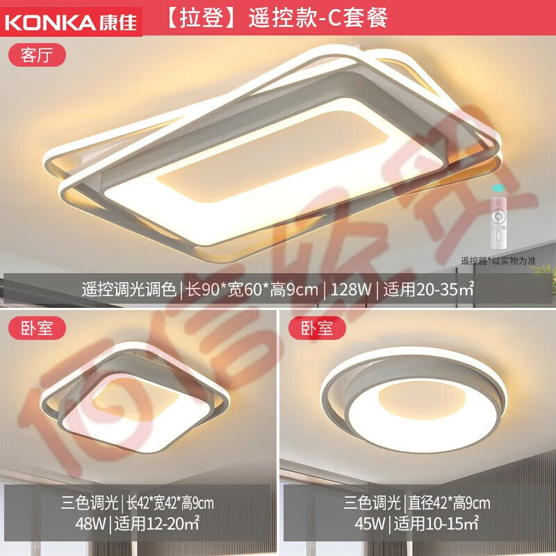 康佳(KONKA)照明LED客廳大燈吸頂燈餐廳臥室全屋燈具套餐 【拉登】2室1廳 自營