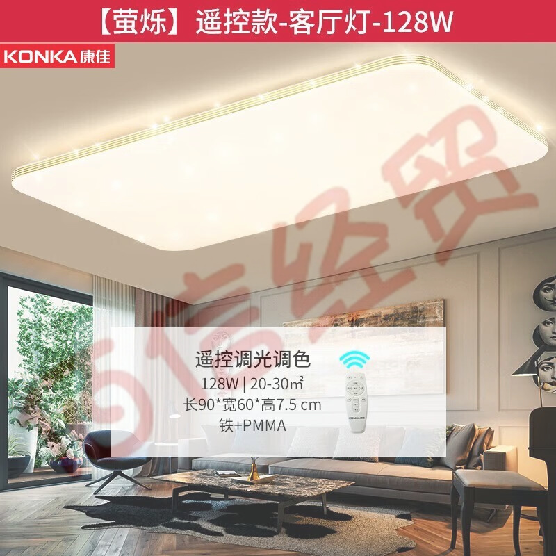 康佳(KONKA)臥室燈吸頂燈客廳燈具書房遙控LED燈調(diào)光調(diào)色全屋燈飾套餐 螢爍 【螢爍】遙控調(diào)光調(diào)色客廳燈 自營
