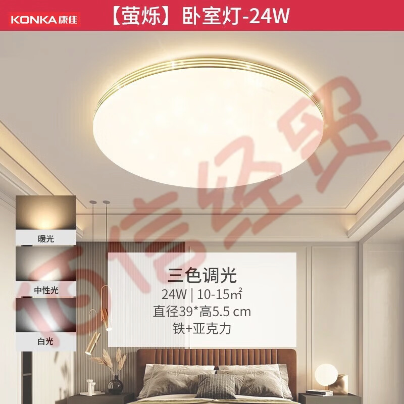康佳(KONKA)客廳燈臥室護(hù)眼吸頂燈書房?jī)和糠浪{(lán)光防頻閃led 三色調(diào)光圓臥室燈 自營(yíng)