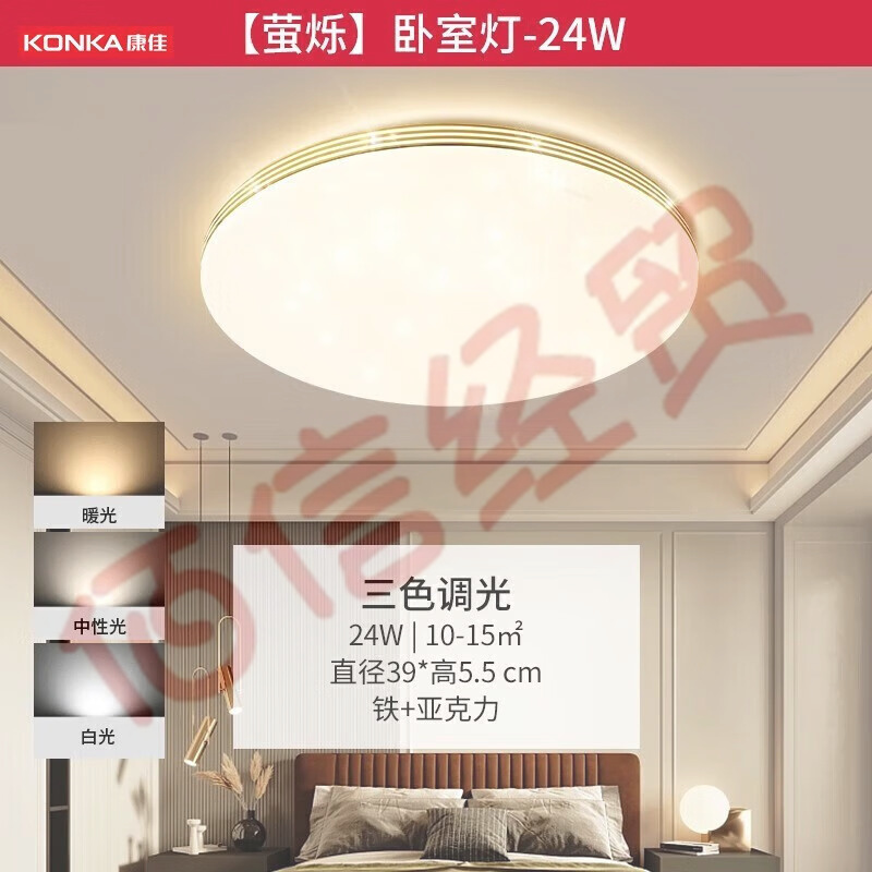 康佳(KONKA)客廳燈具led吸頂燈具套餐臥室現(xiàn)代簡約北歐大氣薄陽臺燈 【螢爍】三色調(diào)光圓臥室燈 自營