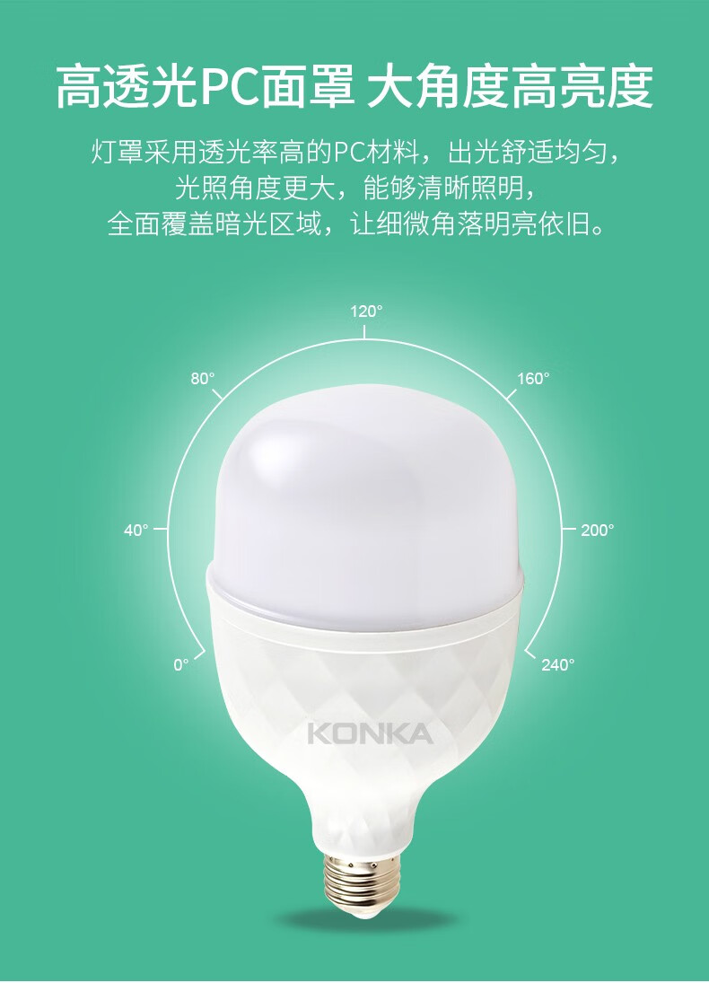 康佳(KONKA)led球泡家用亮節(jié)能e27大螺口光源led護眼照明燈具燈泡 25W 6500K 自營