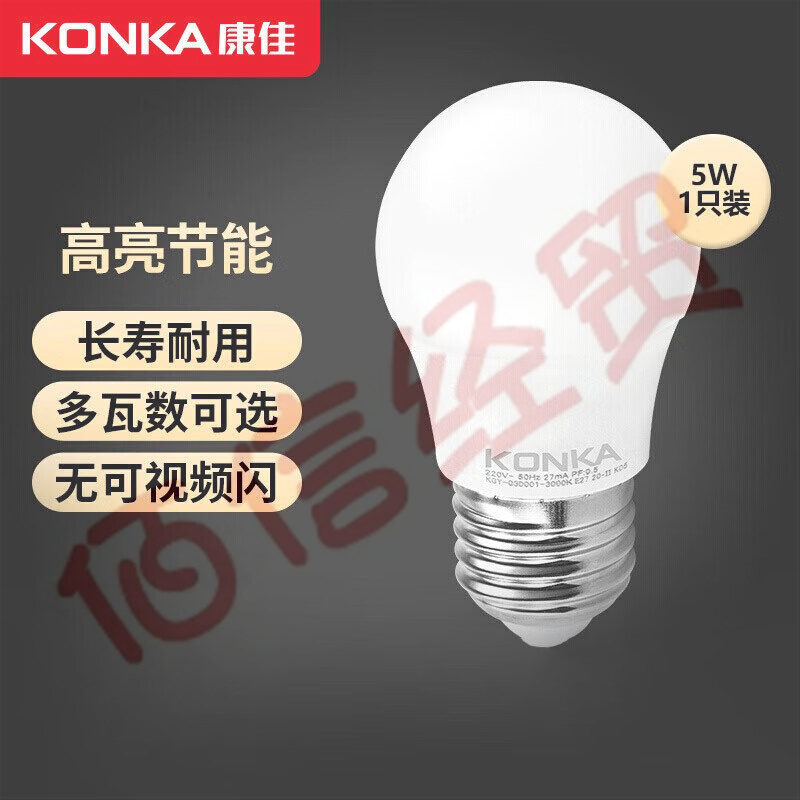 康佳(KONKA)led燈泡E27大螺口高亮節(jié)能燈泡家用商用省電球泡光源 5W 3000K-單色暖光 自營