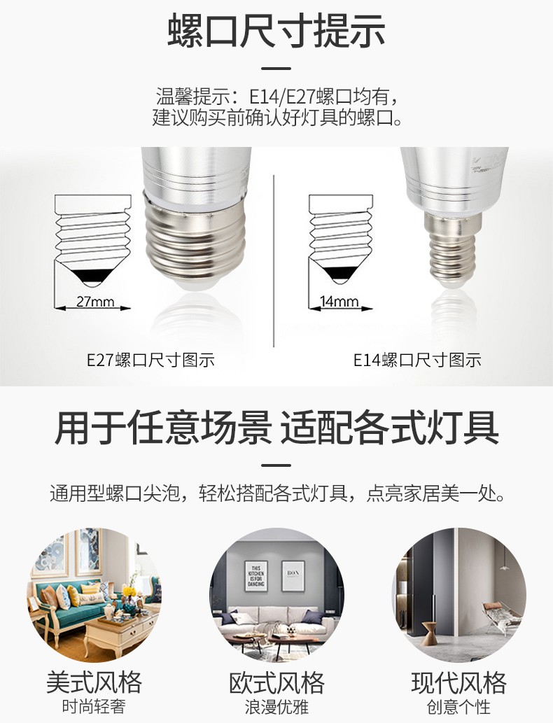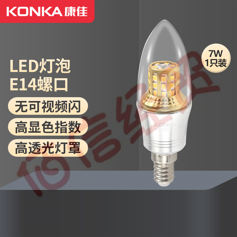 康佳(KONKA)LED燈泡尖泡雙色可選客廳燈壁燈水晶燈吊燈家用替換燈 E14-KQP6044-7DD/7W6500K 自營