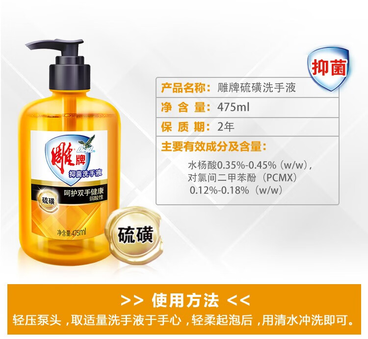 雕牌 475ml 硫磺 抑菌洗手液 家用滋潤 弱酸性 呵護雙手健康 易沖洗 475ml*1瓶--單瓶價--每箱12瓶(整箱售) 自營
