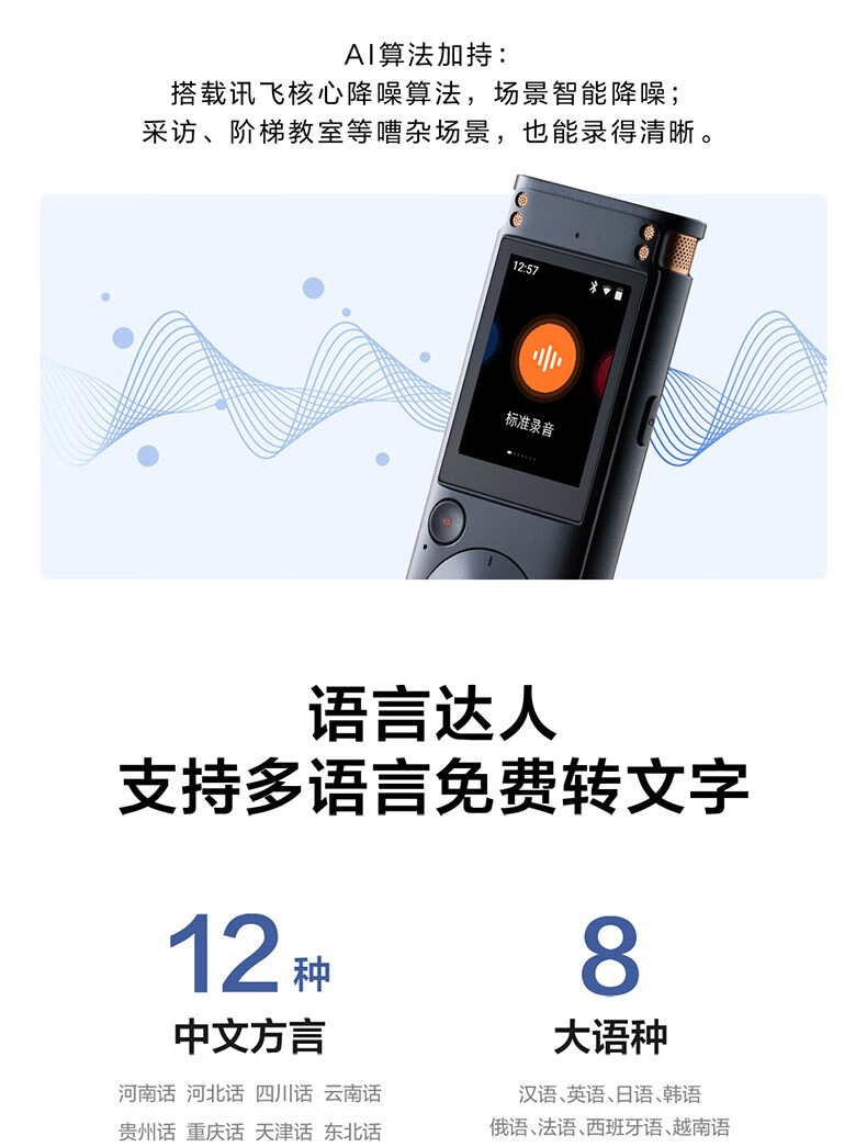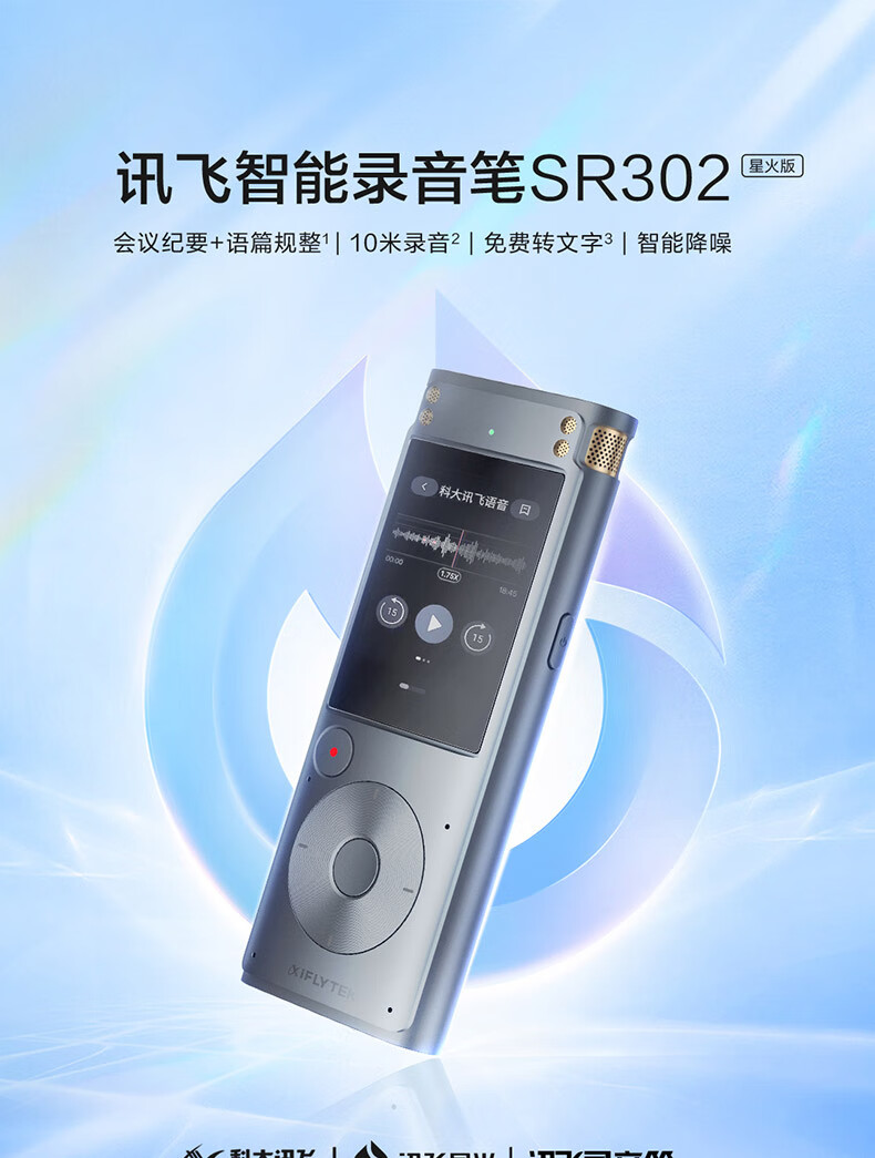 科大訊飛智能錄音筆SR302星火版 32G內(nèi)存 錄音轉(zhuǎn)文字 實時翻譯轉(zhuǎn)寫免費轉(zhuǎn)寫 自營