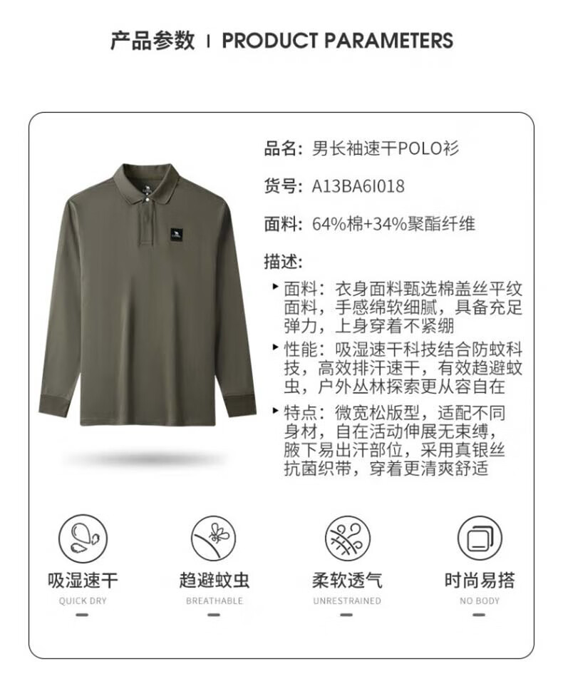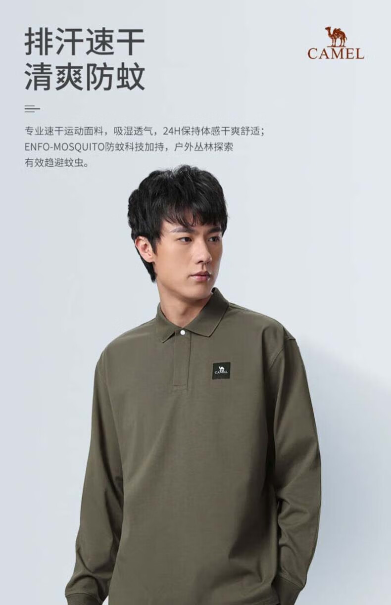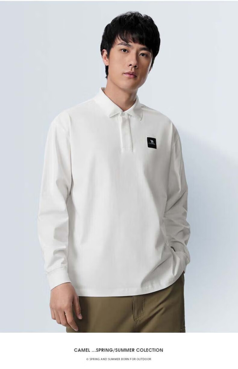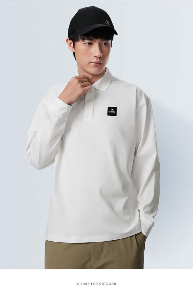 駱駝戶外男長(zhǎng)袖速干POLO衫2023年春寬松翻領(lǐng)運(yùn)動(dòng)上衣 A13BA6I018,無際白,男 XL 自營(yíng)