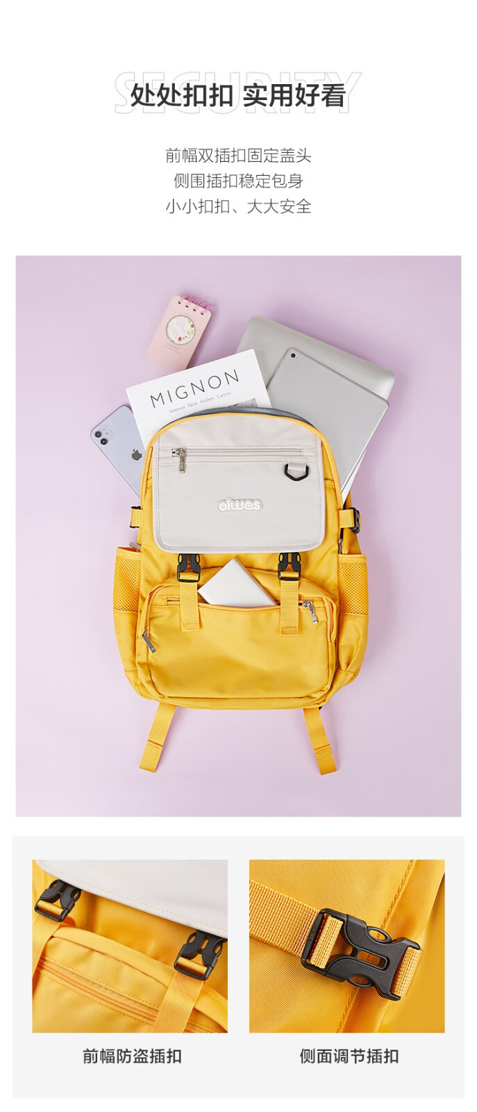愛華仕OCB4441CS 史努比漫畫聯(lián)名款書包 小學生兒童書包深藍色