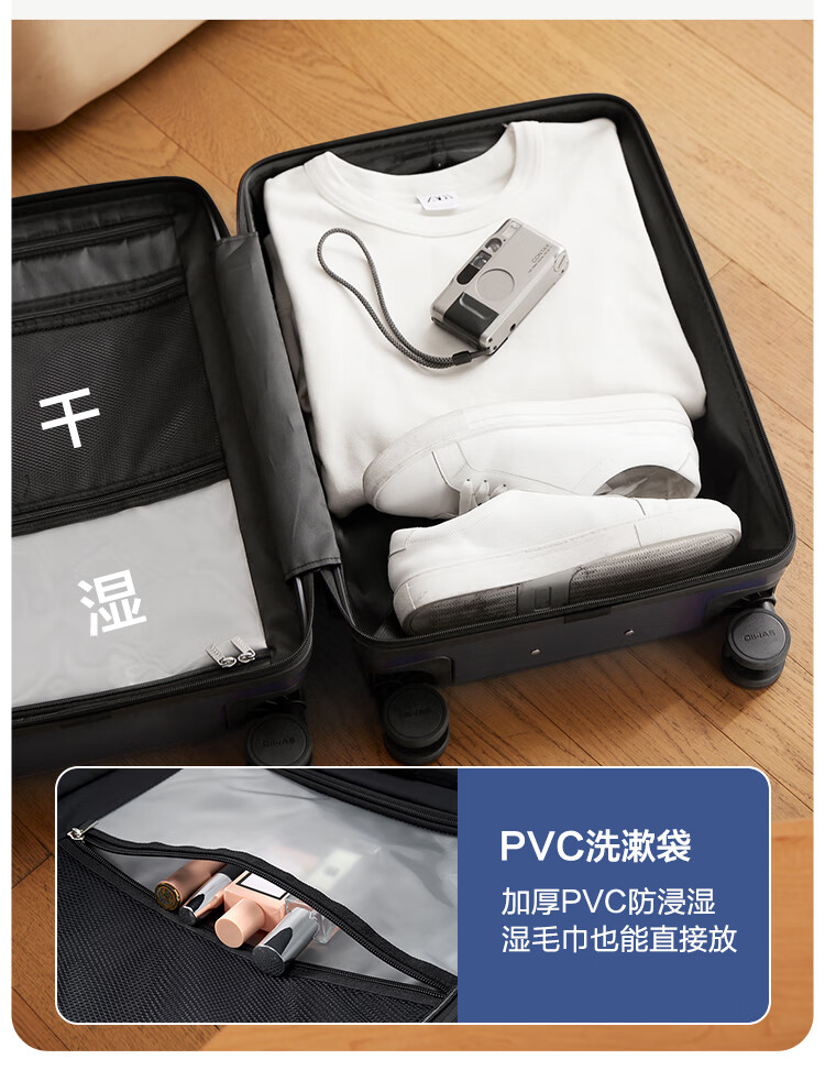 愛華仕斜杠行李箱20英寸小型拉桿箱登機(jī)箱科思創(chuàng)PC男女皮箱旅行箱 星空藍(lán) 自營(yíng)