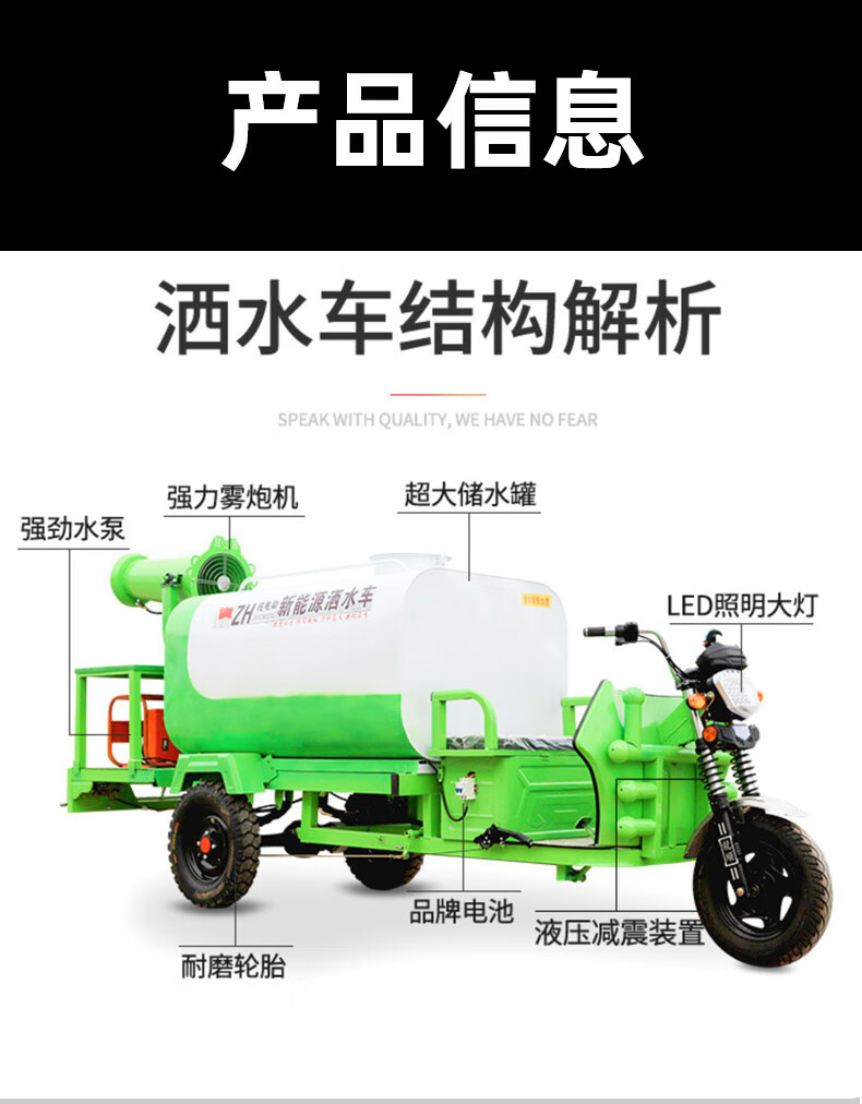 利晨 新能源電動(dòng)三輪灑水車工地噴灑車綠化灑水車除塵霧炮垃圾車環(huán)衛(wèi)車運(yùn)水車多功能小型噴霧車1.5方純電版 自營(yíng)