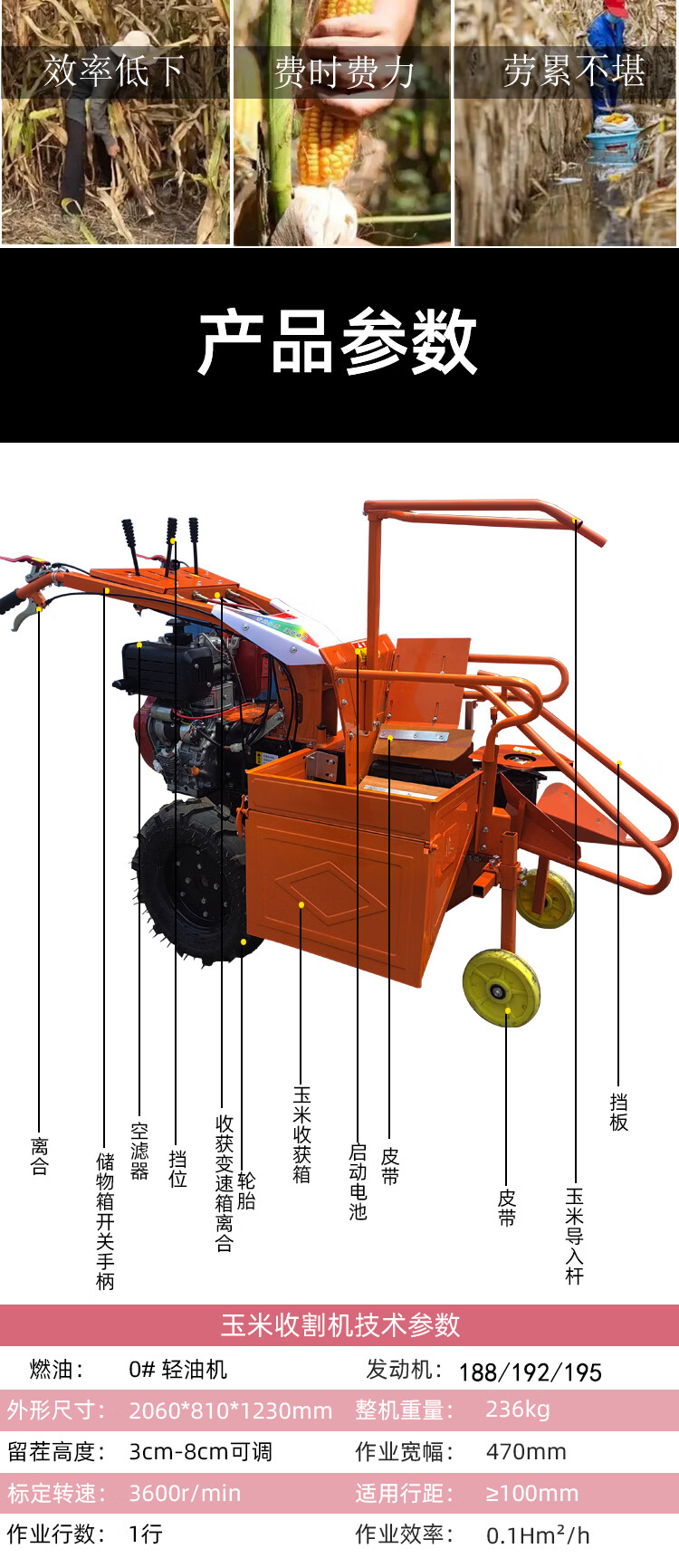 利晨單行收玉米收割機小型家用神器收獲機扒皮秸稈粉碎還田一體機直連 自營