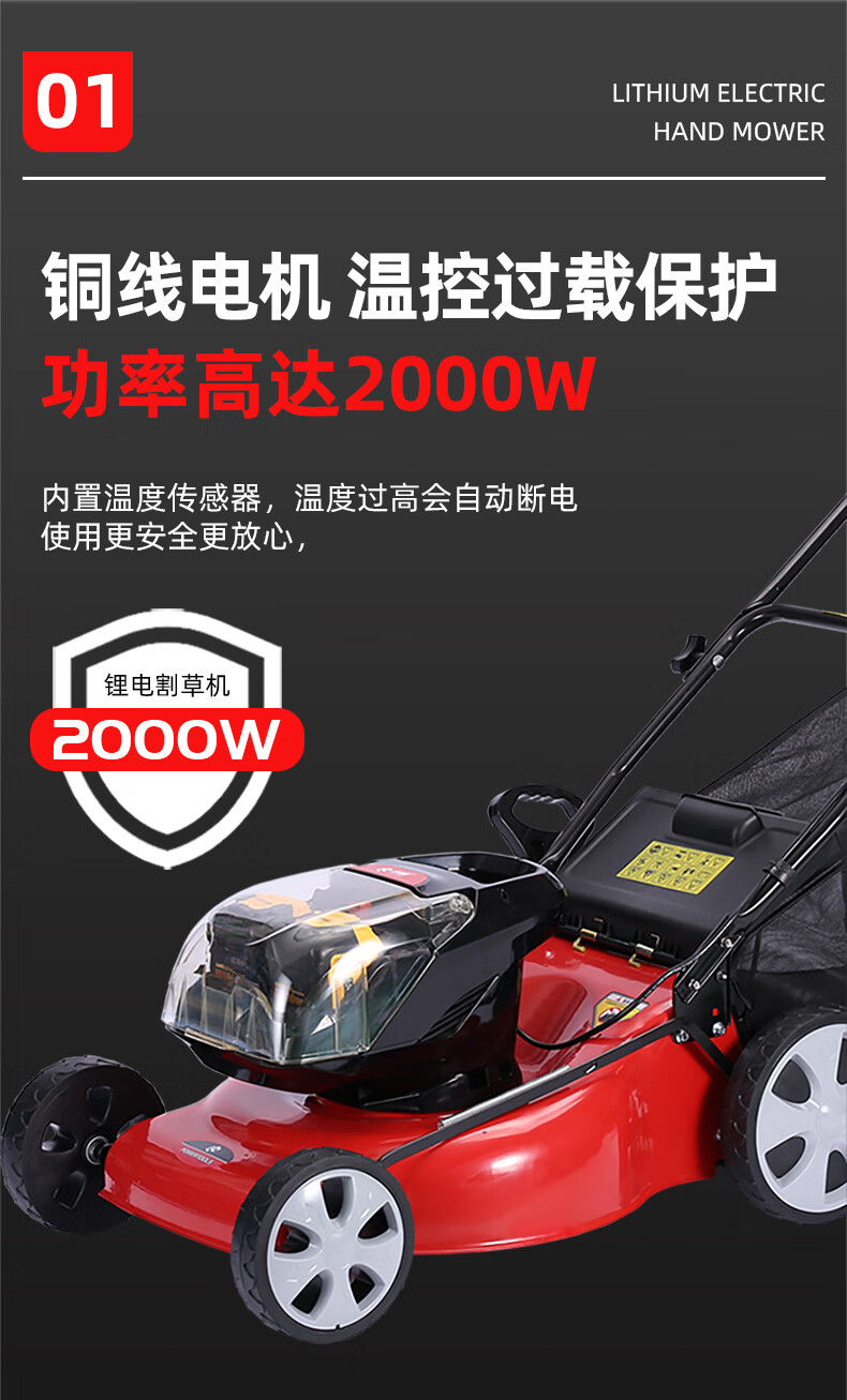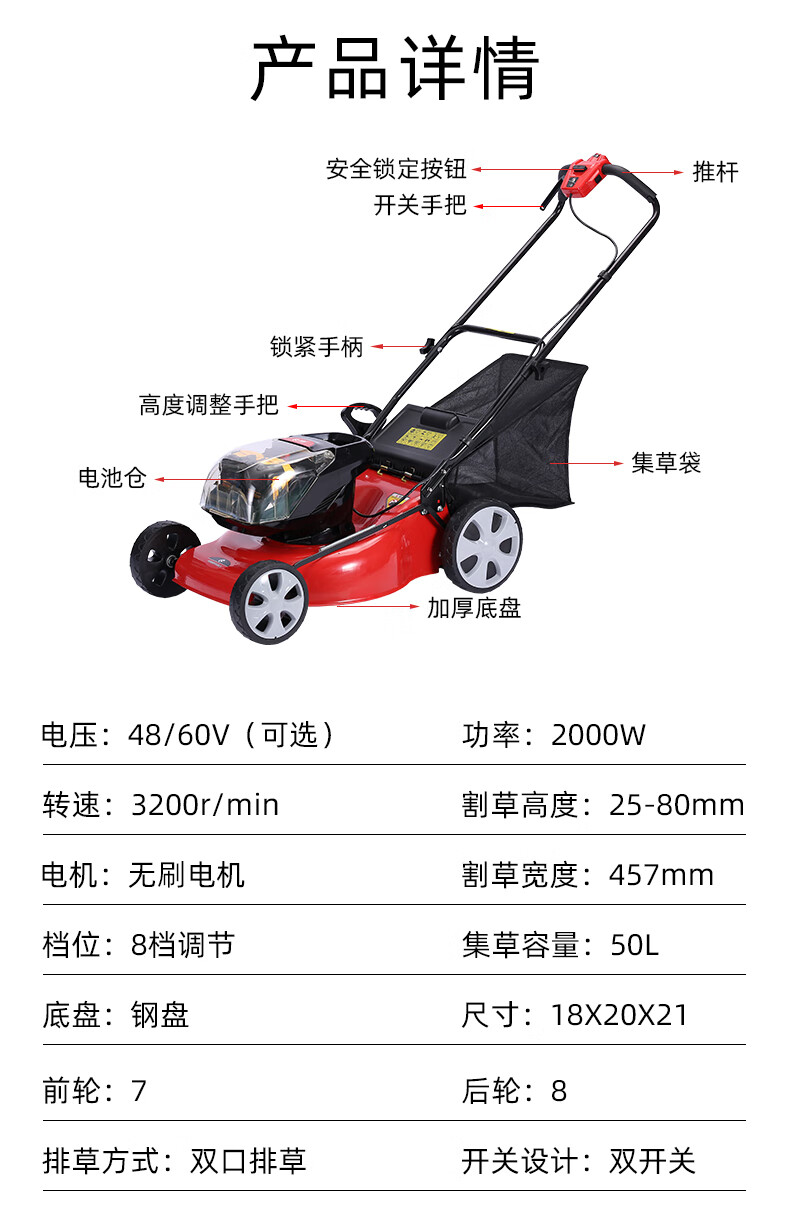 ¥3400.00利晨60V電動(dòng)草坪機(jī)修剪機(jī)手推割草機(jī)充電式鋰電池除草剪草打草推草機(jī) 20寸草坪機(jī)(側(cè)排后排,四電一沖)