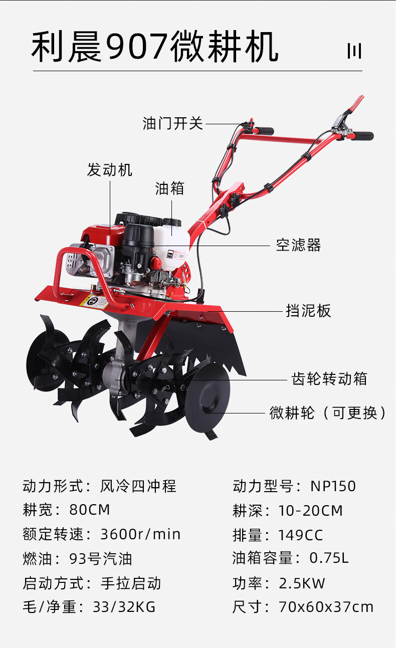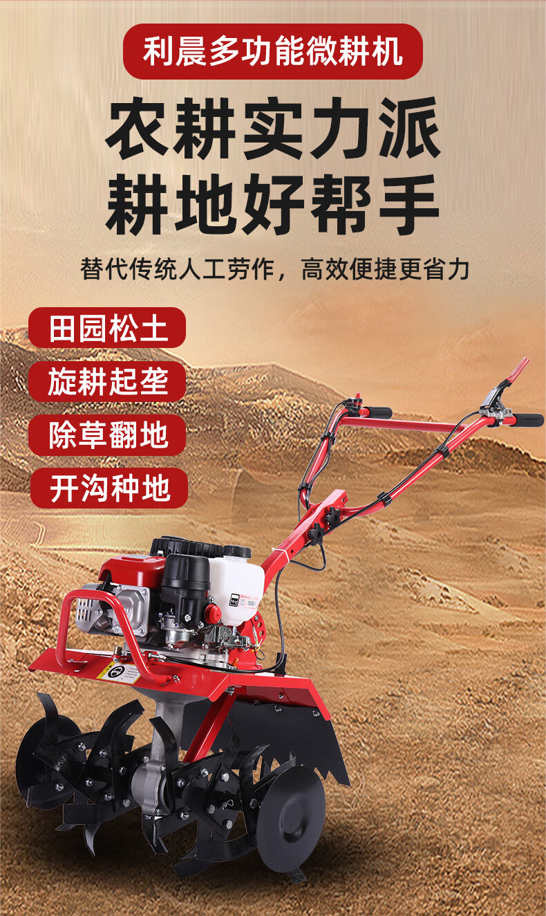 利晨宗申NP150汽油微耕機農(nóng)用犁地翻土松土開溝機耕田翻地耕地旋耕機(主機+旋耕刀+輪胎+開溝器+輪胎) 自營