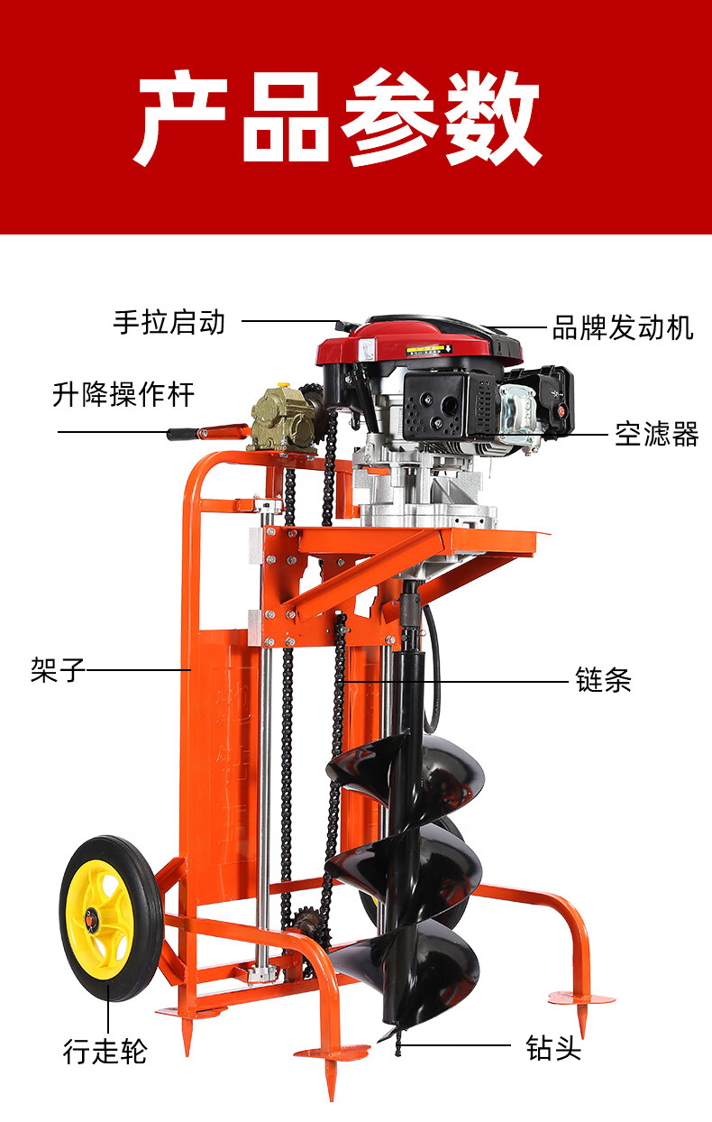 利晨地鉆挖坑機打坑機植樹挖樹坑機鉆土機打樁機挖地機四沖程打孔機(四沖程196cc地鉆+400mm鉆頭) 自營
