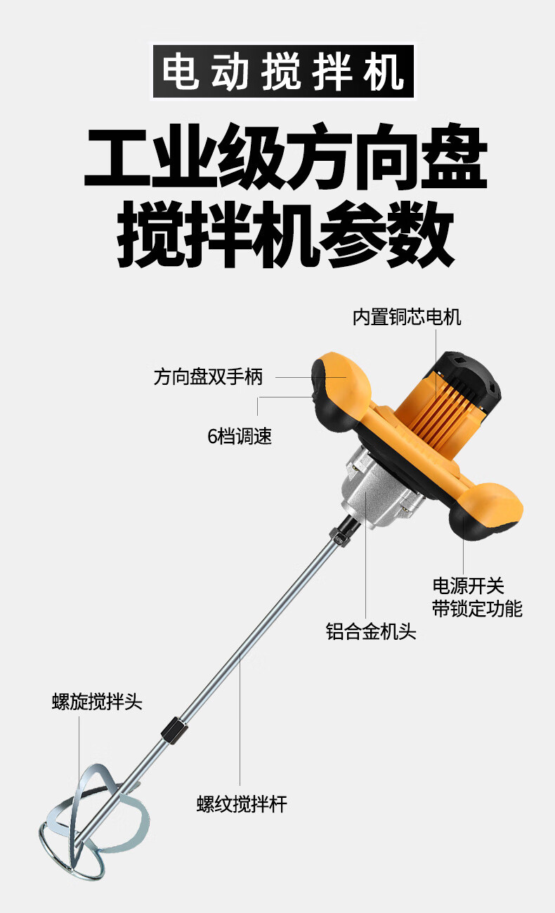 利晨電動攪拌器油漆攪拌機水泥攪拌機方向盤六檔調速攪拌器 自營