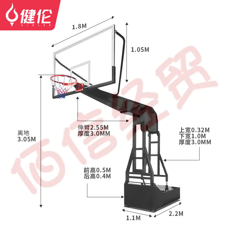 健倫健倫比賽訓練專用加厚加粗立柱升級款平箱籃球架/只