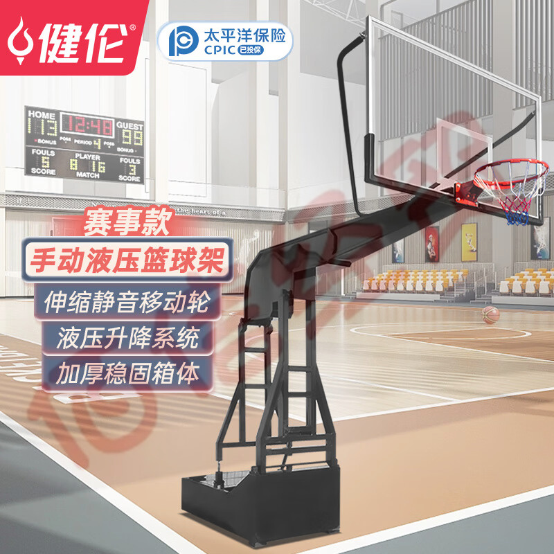 健倫(JEEANLEAN)JLGAA60 籃球架戶外移動(dòng)?槍式液壓籃球架(含防撞包24秒計(jì)時(shí)器) 自營(yíng)