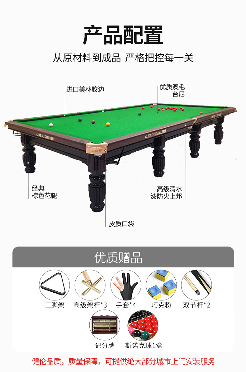 健倫(JEEANLEAN)JLAB154斯諾克臺(tái)球桌標(biāo)準(zhǔn)成人家用桌球桌十二尺臺(tái)球桌 頂配版 自營(yíng)
