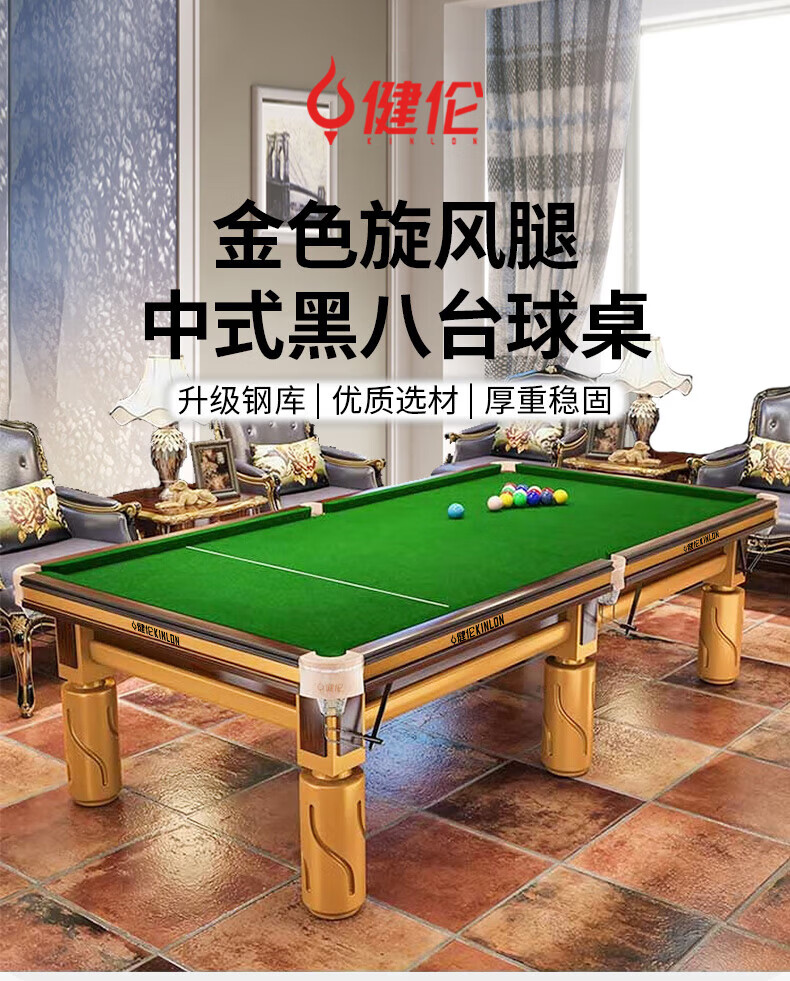 健倫臺(tái)球桌標(biāo)準(zhǔn)成人8球家用桌球桌黑八九尺臺(tái)球桌 頂配版JLAB159 自營