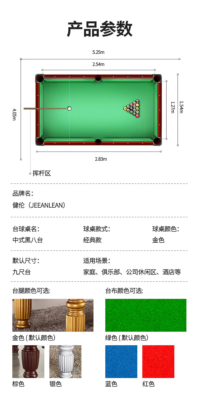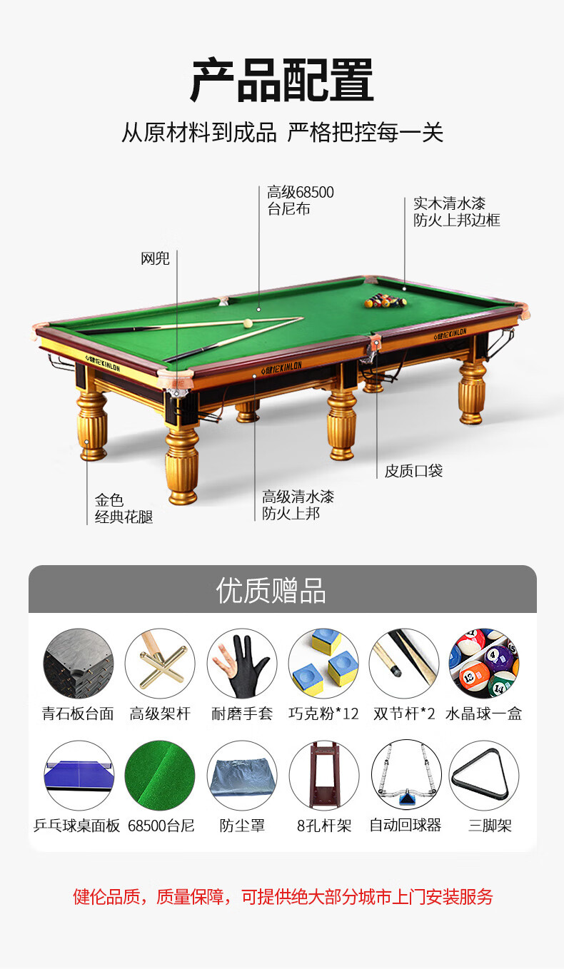 健倫(JEEANLEAN)JLAB151標(biāo)準(zhǔn)臺(tái)球桌家用高端娛樂(lè)會(huì)所黑八美式桌球臺(tái)頂配版 自營(yíng)