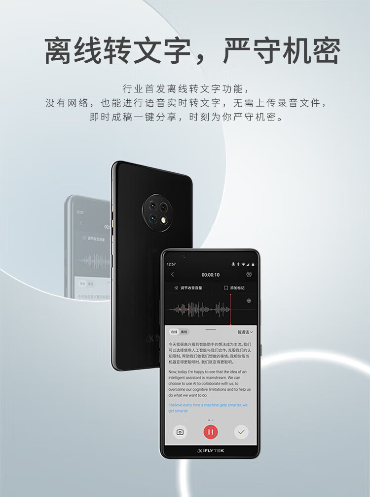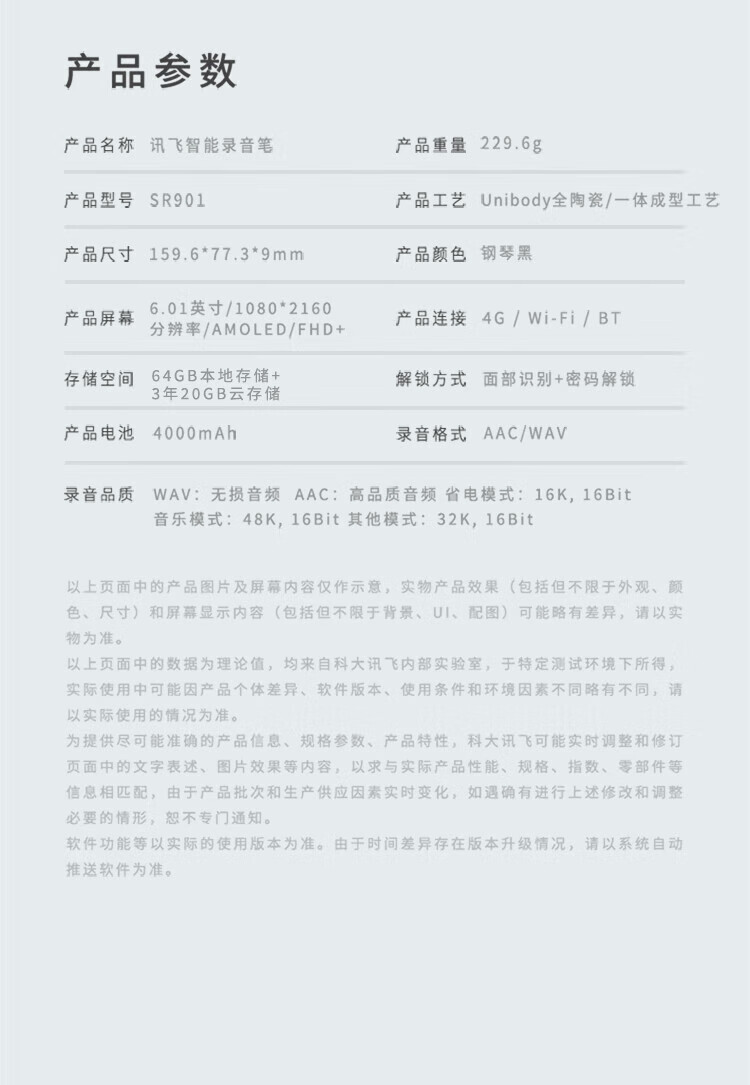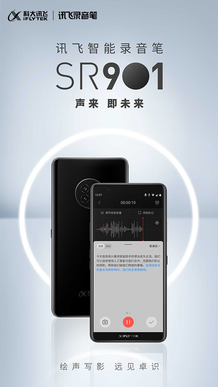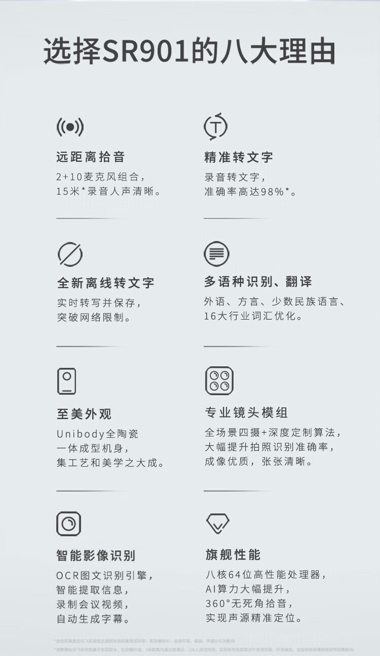 科大訊飛智能錄音筆SR901 錄音轉(zhuǎn)文字 視頻實時翻譯 2+10麥克風(fēng)拾音 OCR識別 離線轉(zhuǎn)寫 64G