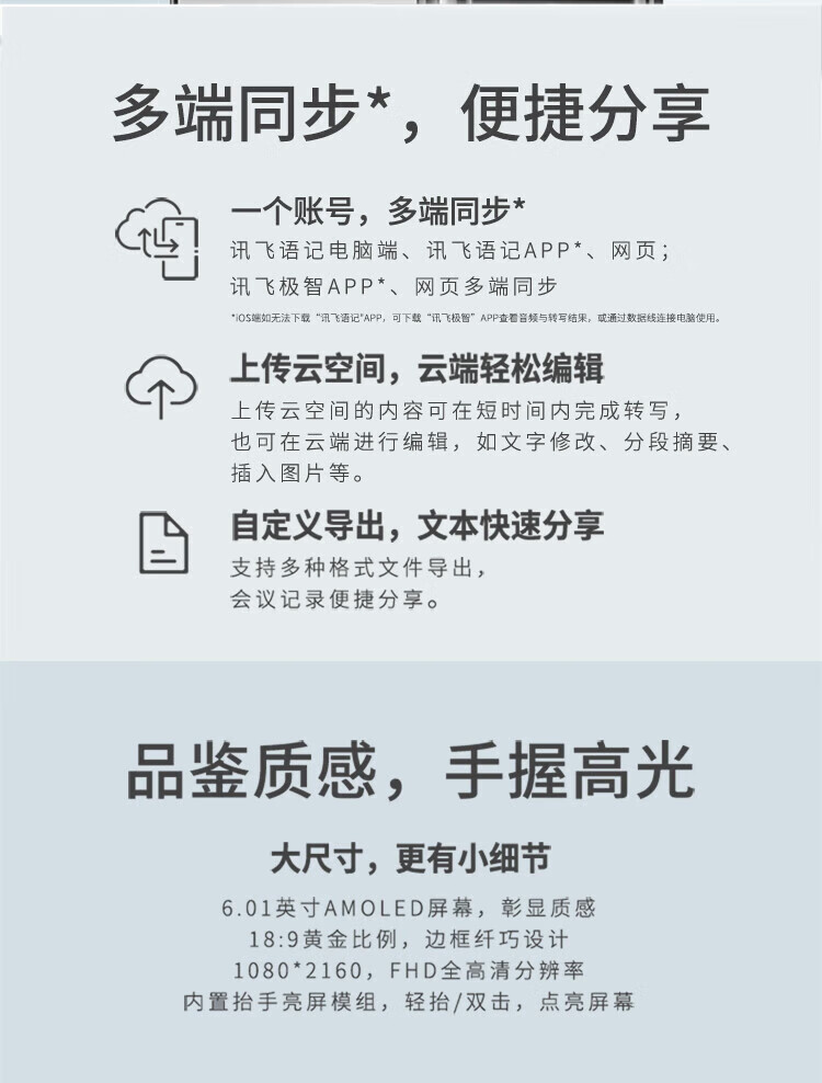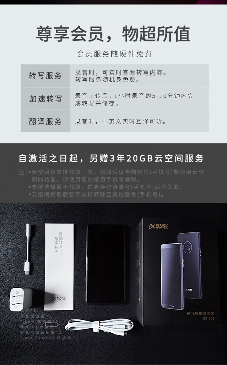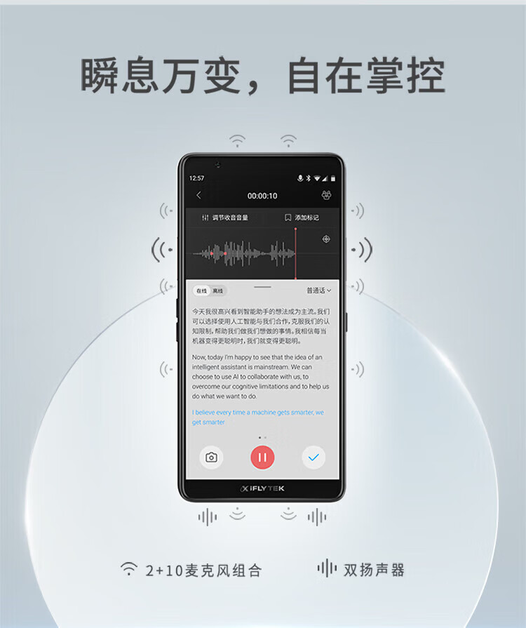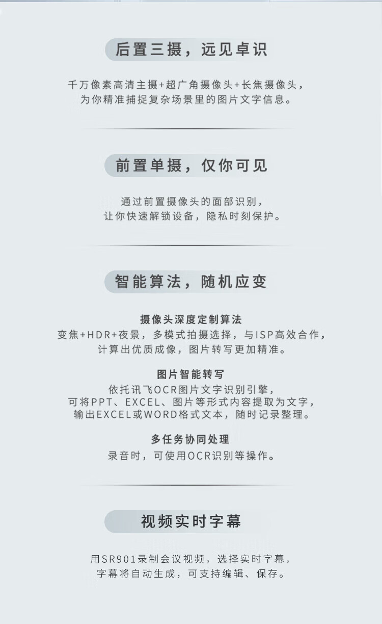 科大訊飛智能錄音筆SR901 錄音轉(zhuǎn)文字 視頻實時翻譯 2+10麥克風(fēng)拾音 OCR識別 離線轉(zhuǎn)寫 64G