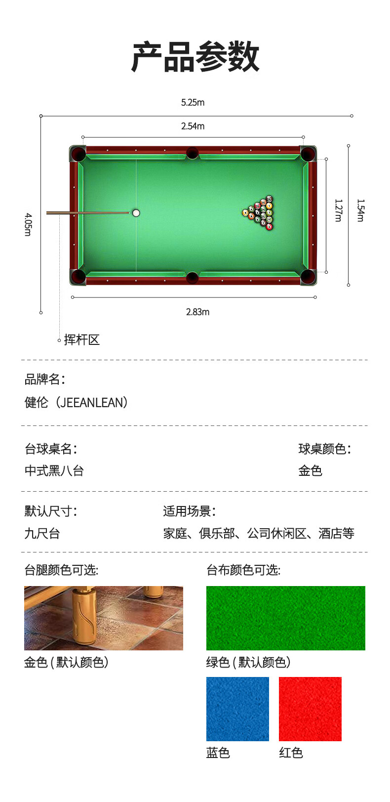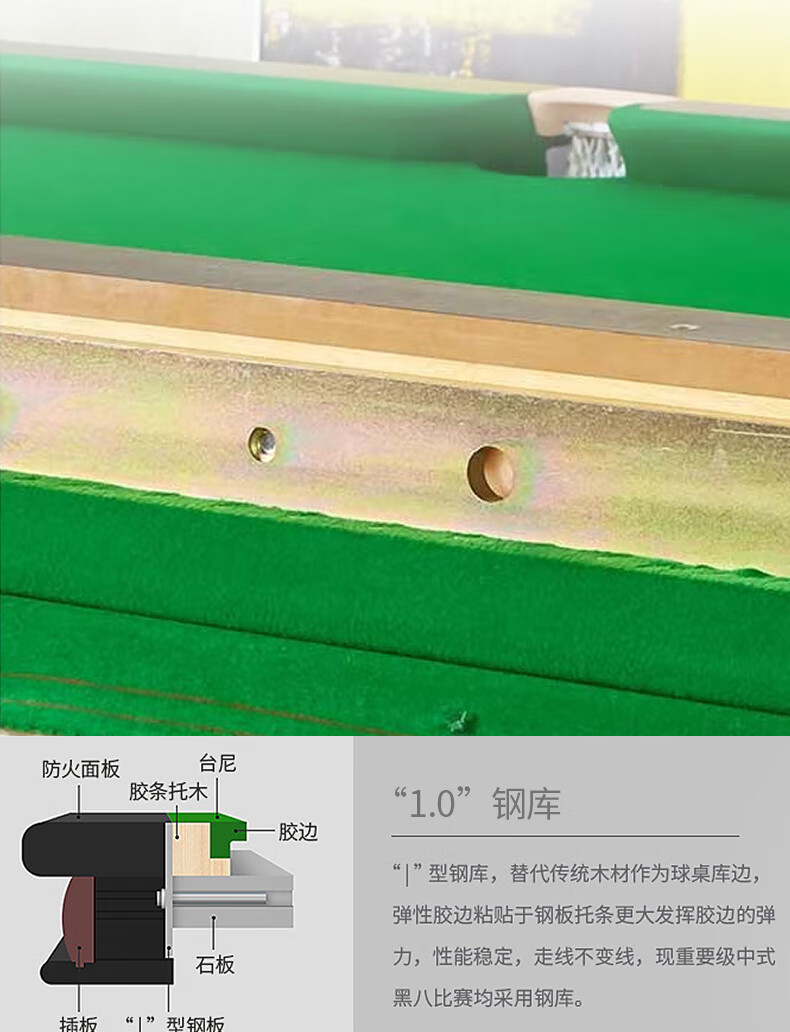 健倫臺(tái)球桌中式黑8球房家用球桌成人標(biāo)準(zhǔn)美式黑8 JL-S12 自營(yíng)