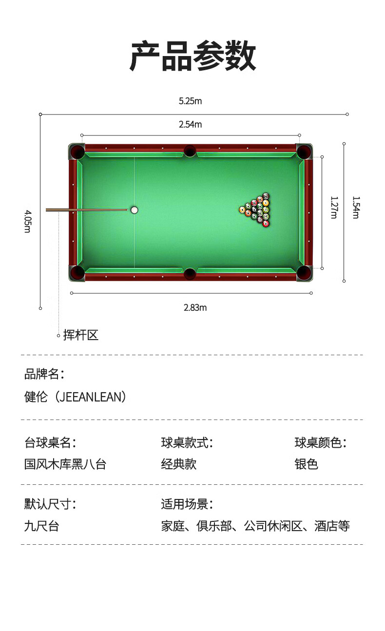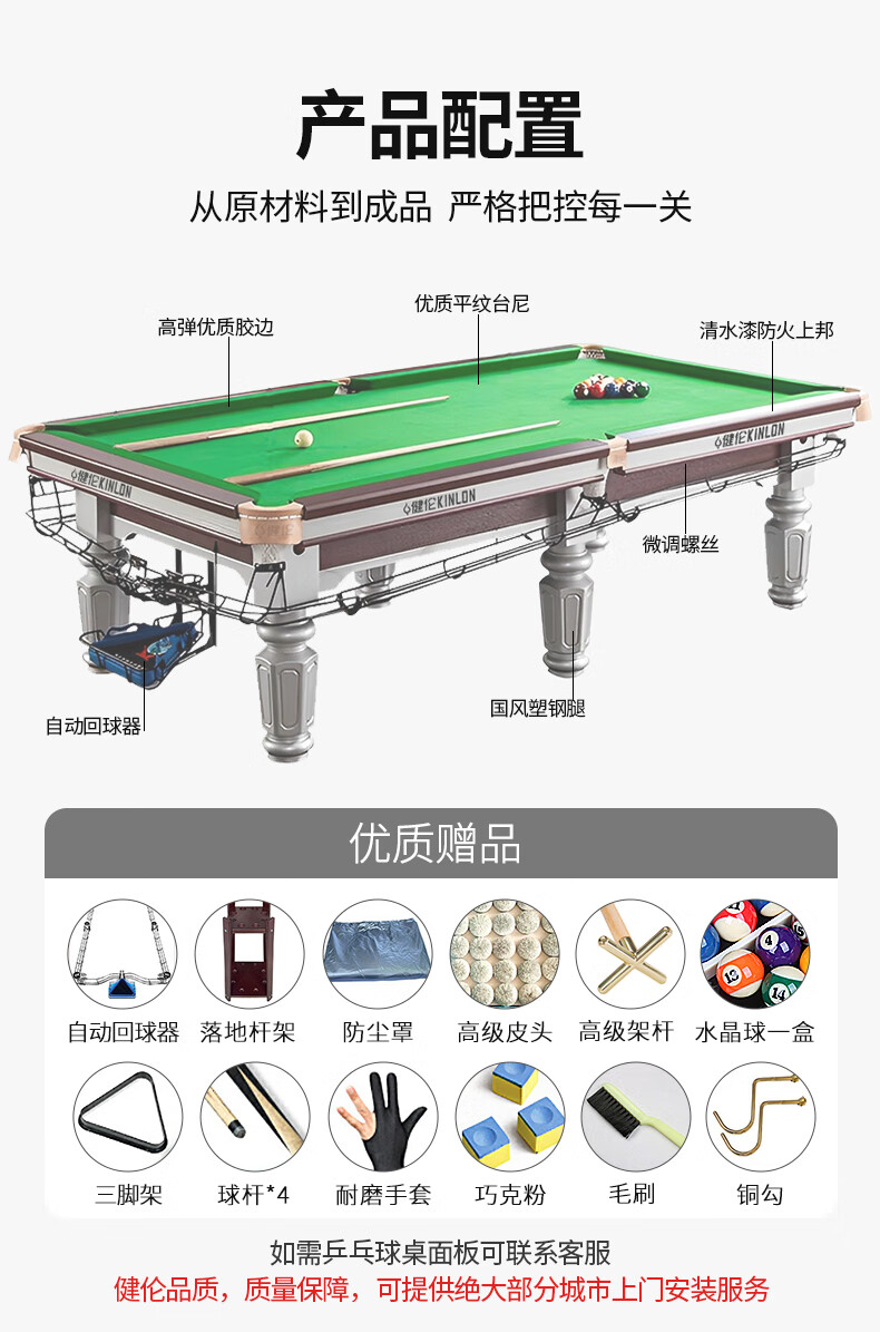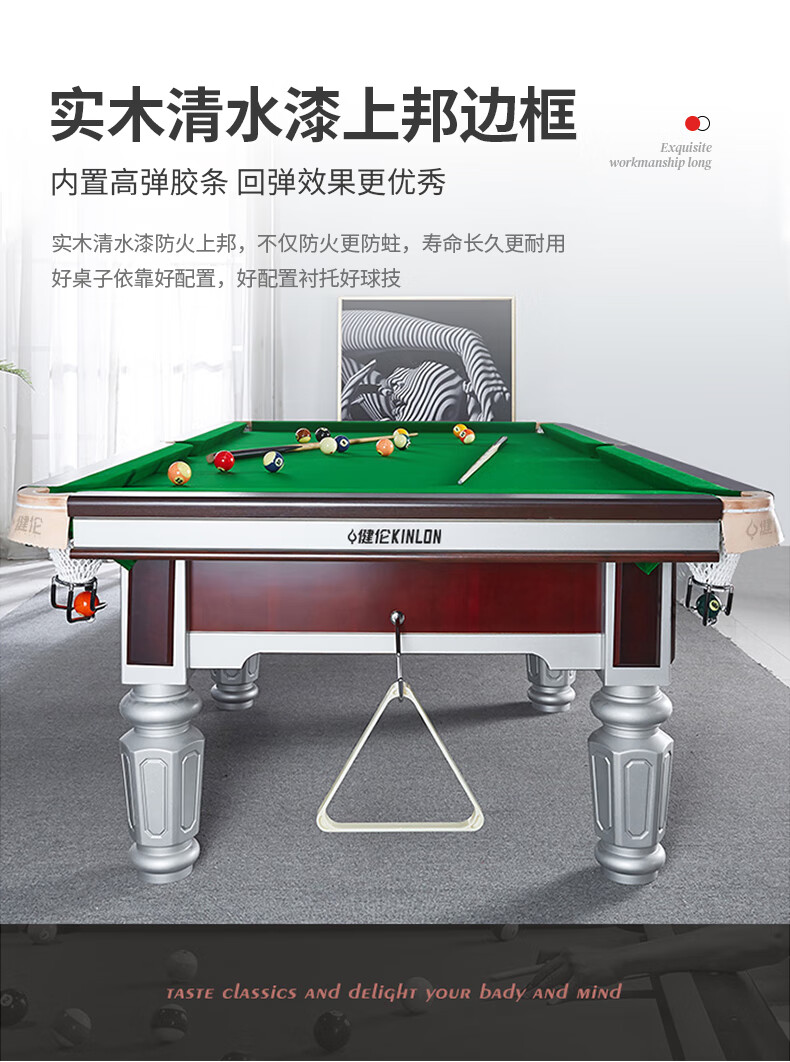 健倫臺(tái)球桌中式黑8球房家用球桌成人標(biāo)準(zhǔn)美式黑8 JL-S11 自營