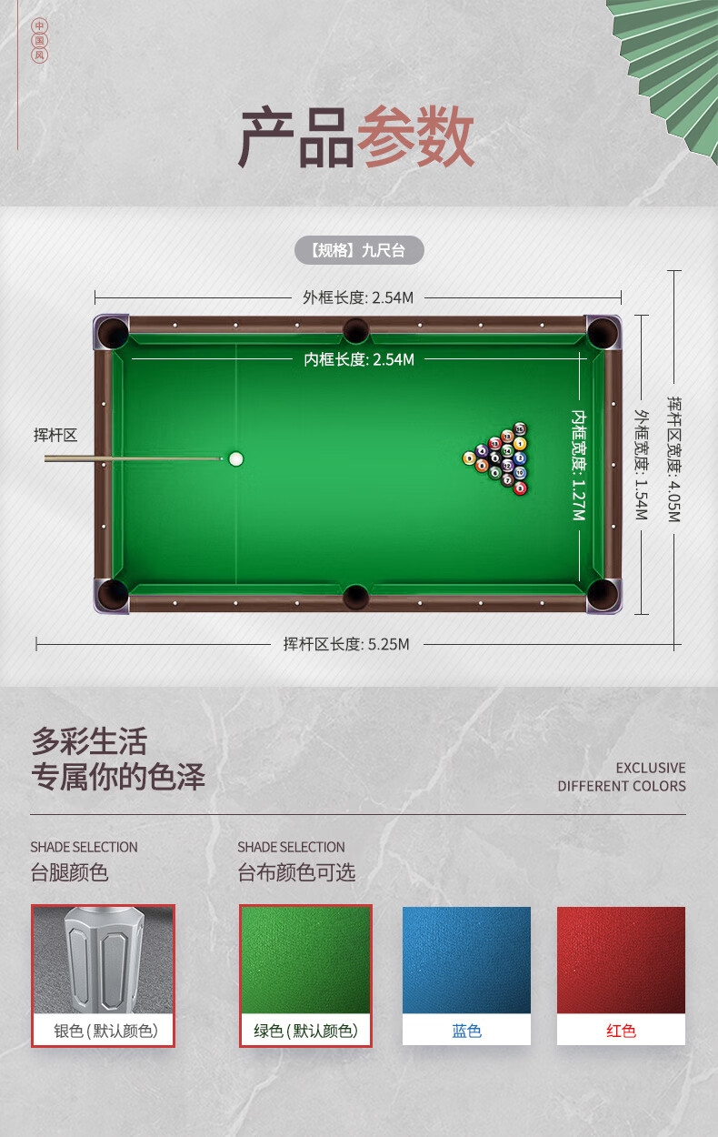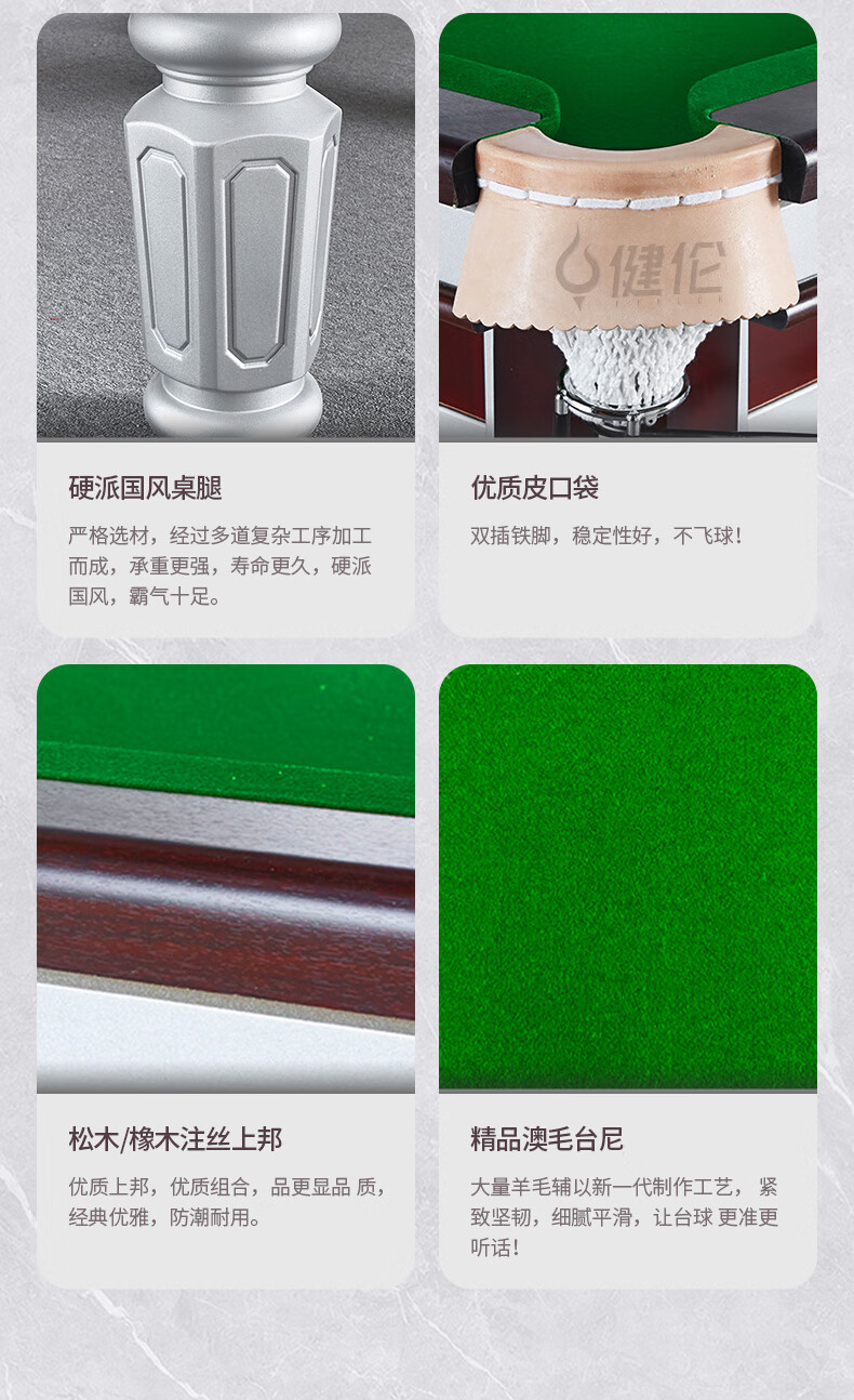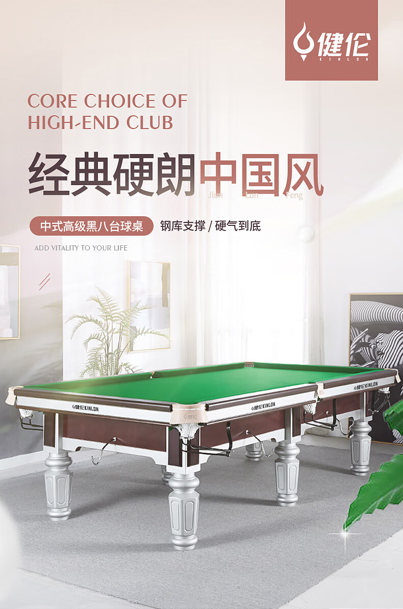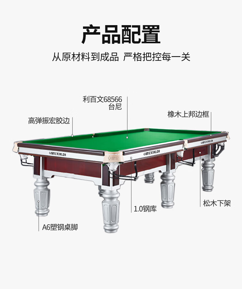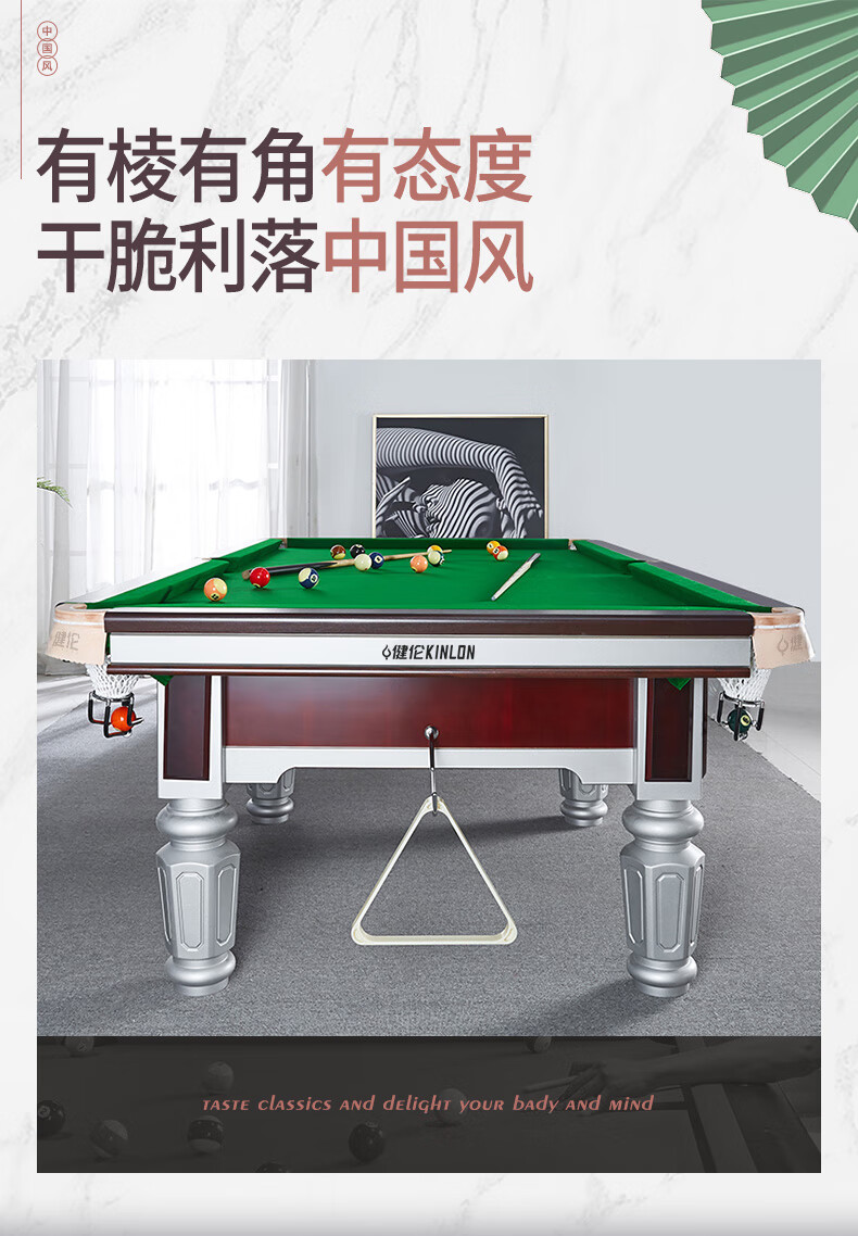 健倫(JEEANLEAN)臺球桌鋼庫銀腿標(biāo)準(zhǔn)九尺美式黑八JL-ZQT-A5S 自營