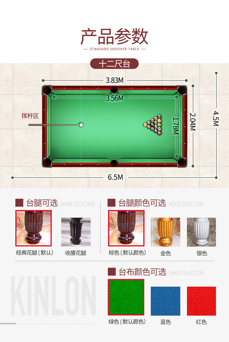 健倫(JEEANLEAN)JLAB124臺球桌標準英式斯諾克室內(nèi)球房家用英式標準桌球 頂配款 自營