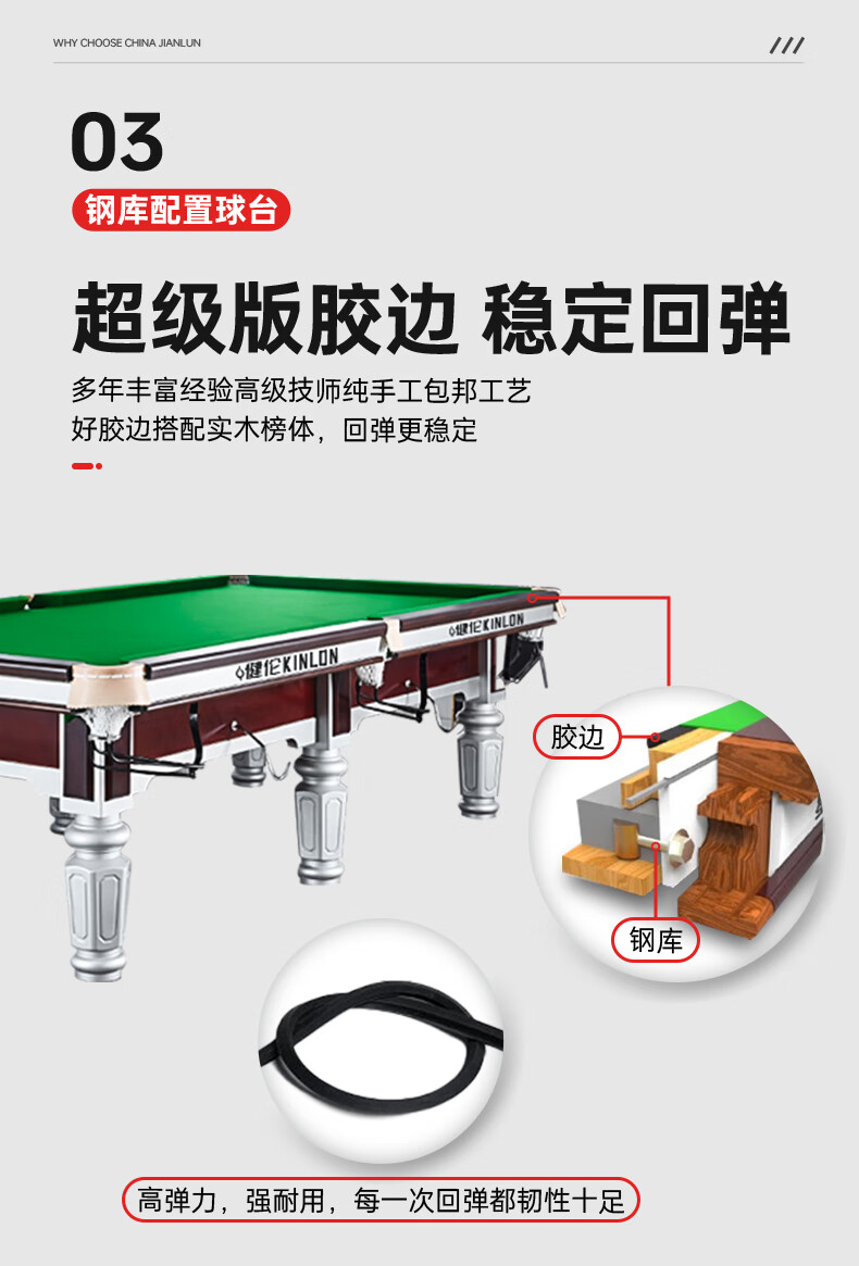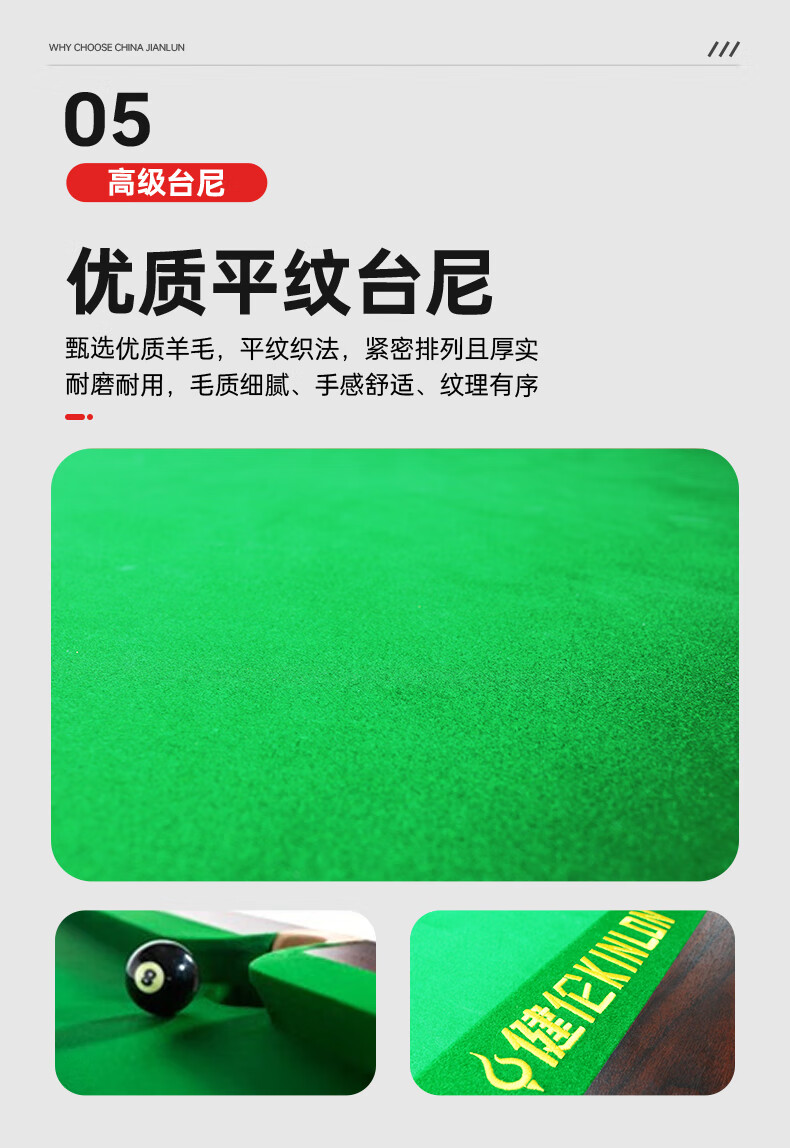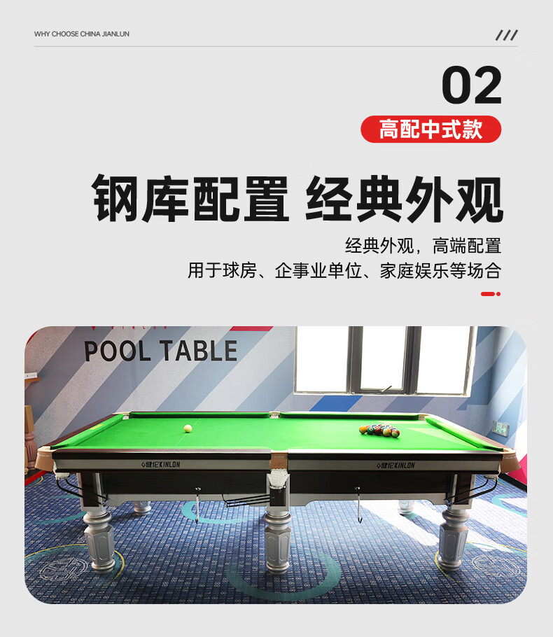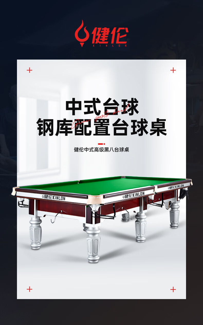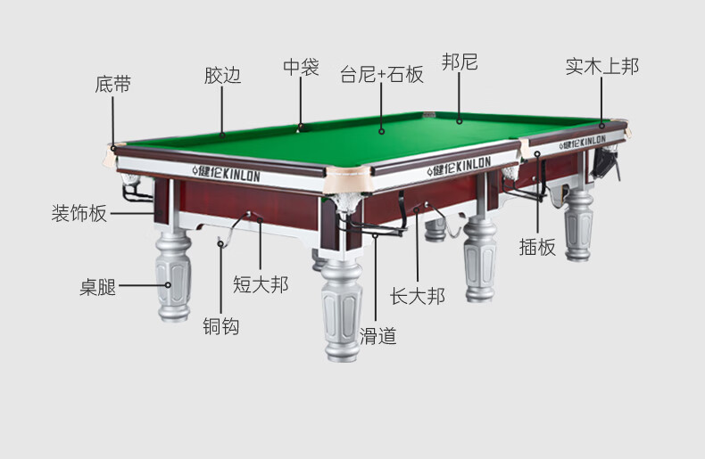 健倫(JEEANLEAN)JLAB133 臺球桌 鋼庫銀腿 九尺家用高端美式黑八 全包采購款 自營