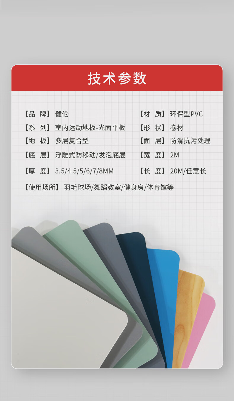 健倫羽毛球運動地膠室內(nèi)運動隔音地墊PVC寶石紋8mm 自營