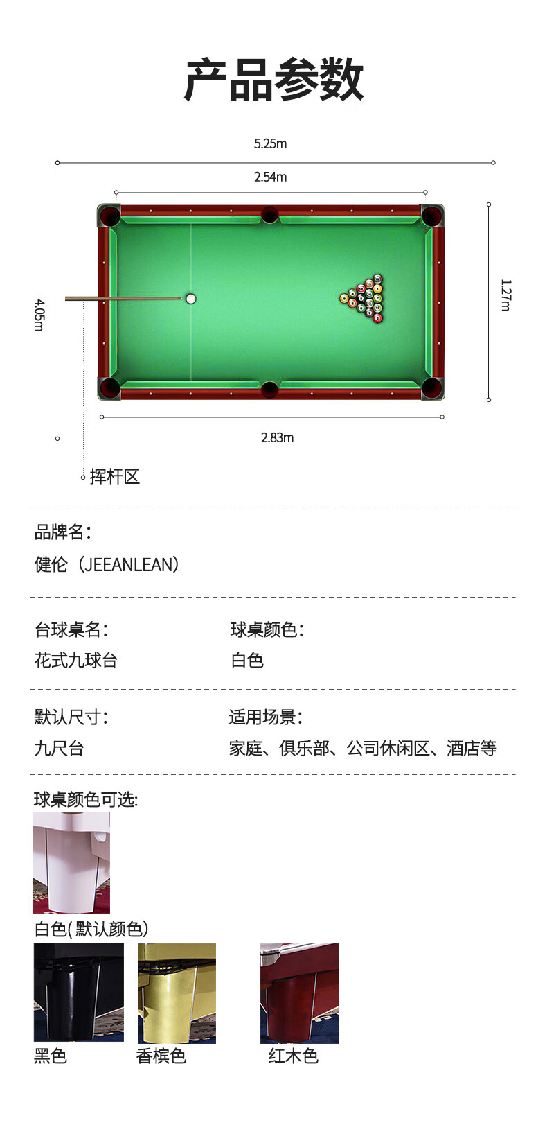 健倫(JEEANLEAN)JLAB135 美式九球臺(tái)球桌標(biāo)準(zhǔn)成人桌球家用比賽標(biāo)準(zhǔn)臺(tái)球桌 自營